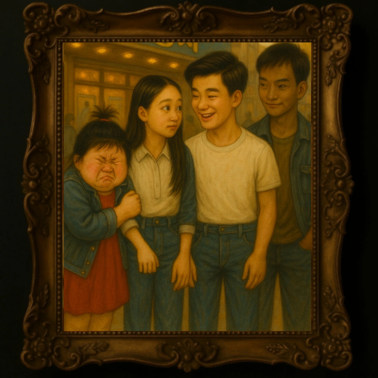 내 친구와 잘생긴 선배는 딱 붙어 걸으며
