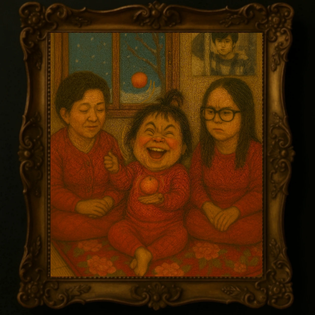 엄마, 고모, 나는 아랫묵에 빨간 담요를 깔며