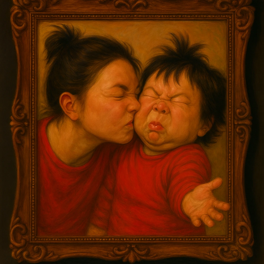 몇 달 뒤 고모가 뽀뽀를 한다.