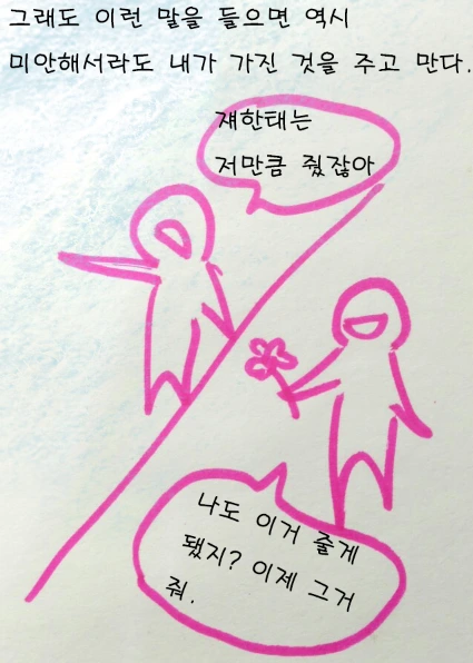 그래서 이렇게 구구절절하게 '명백하게 말할 수 있는 섭섭한 일'을 계속, 굳이, 꺼내어서 강조하고 있다. 핑계처럼. 잘못은 그 친구들이 먼저 한 것처럼.