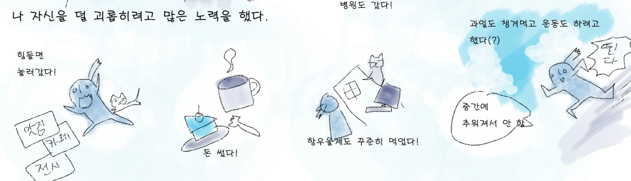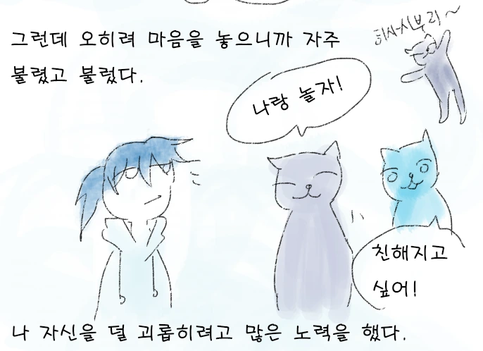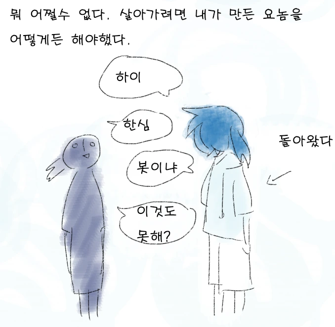 피곤하고 귀찮아서 미루다보니, 31일부터 그렸던 만화를 이제야 마무리했다. 그렇게 채색에 신경쓴 것도 아닌데 이렇게나 시간이 걸리다니 민망하다.