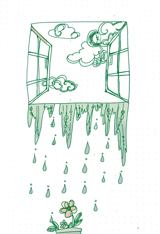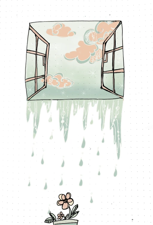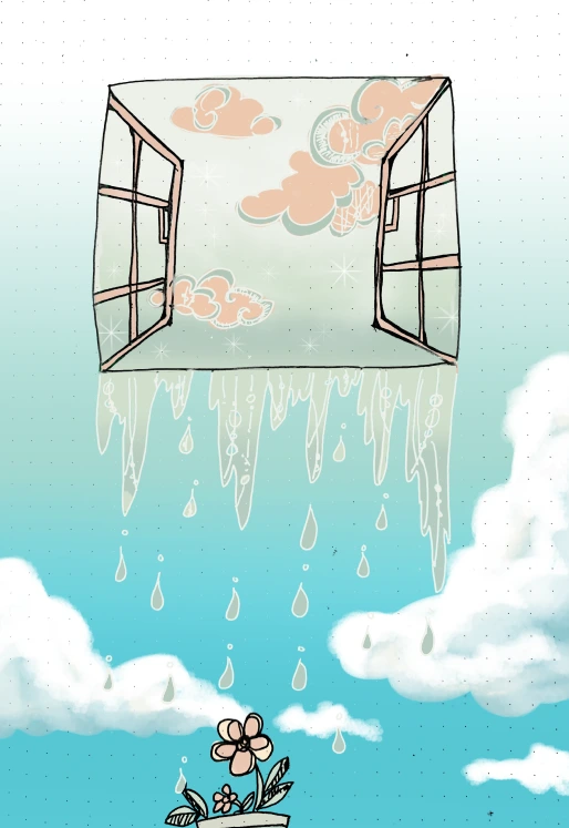 창 안은 밤이고 창 밖은 맑은 낮입니다.