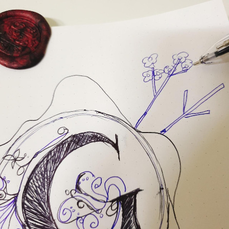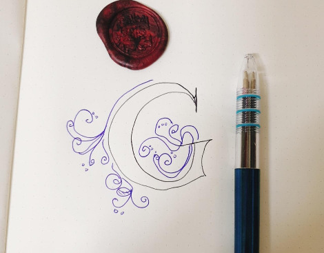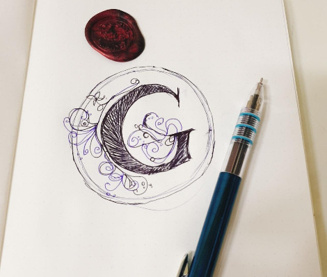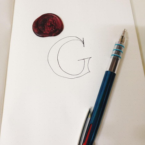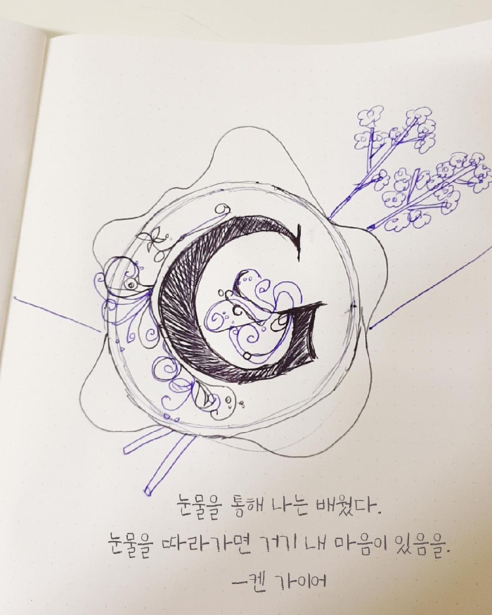 나는 강씨니까 G로 그려보겠다. 간단하게 그릴거니까 그냥 삼색볼펜.