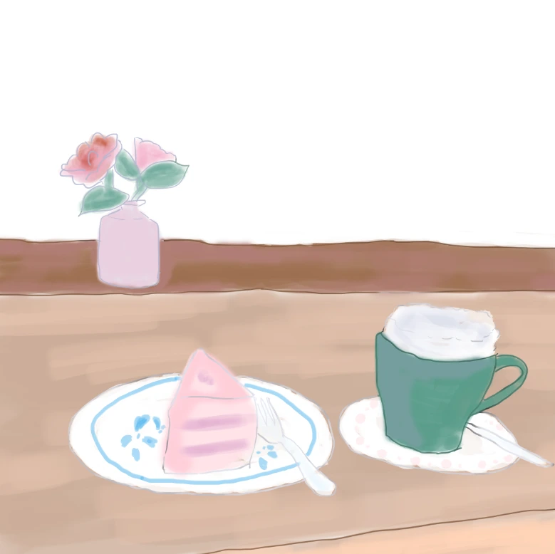 채색 중이다. 케이크는 당근케이크였는데 채색하다 보니 체리? 딸기? 약간 그런 느낌으로 바뀌었다.