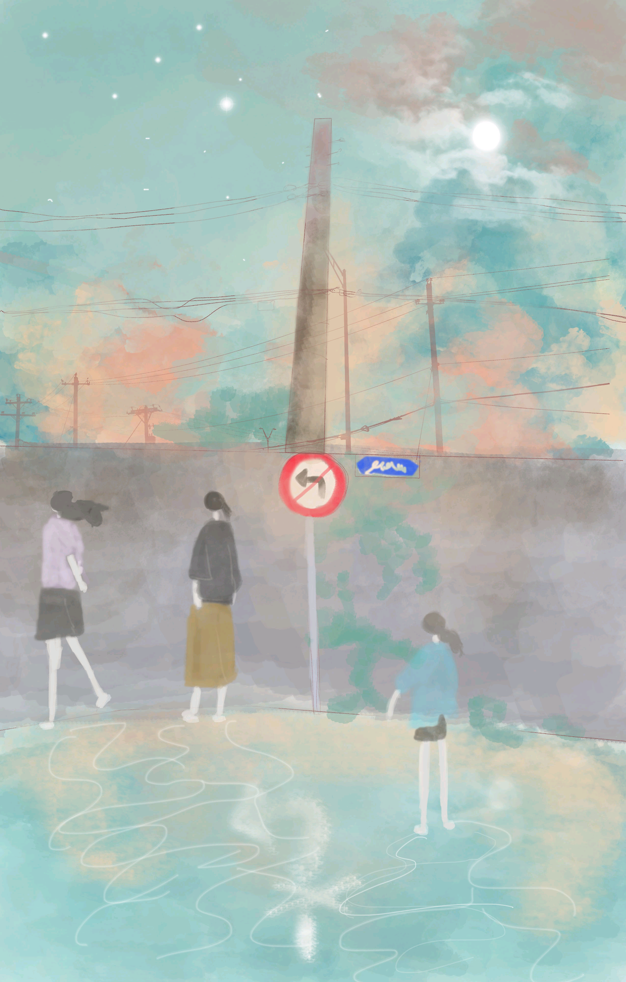 요즘은 그림을 그리는 상상력이 거의 없어져서, 원래 있던 사진에 상상을 더하고 있다. 내가 찍은 사진 중, 좋아하는 사진의 분위기를 바꾸어버리는 것도 재미가 있다. 사진은 실제니까 내가 그린 그림은 실제로는 존재하지 않는 분위기의 색 조합으로 환상적인 분위기에 초점을 맞춘다. 과거를 미화하는 편은 아니지만, 예전의 사진을 지금의 나의 정서로 바꾸는 작업은 매력적이다. 원래 있던 사물을 어디까지 재현하고 무엇을 어떻게 없앨 것인지 고민하는 재미도 있다.