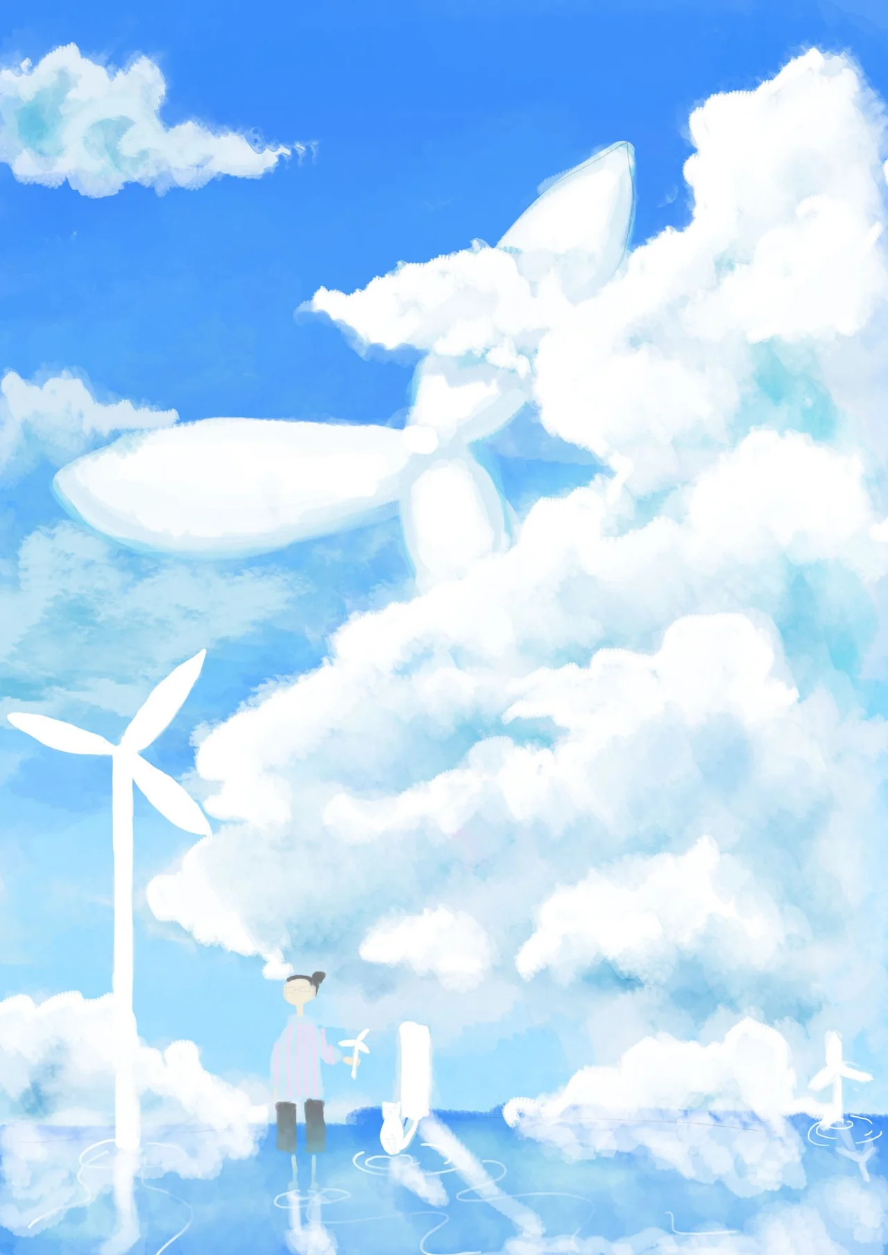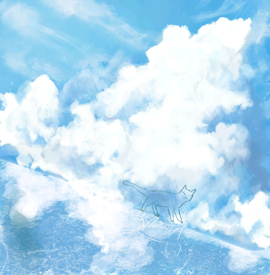 오늘 산책을 나가니까 구름이 하나도 없었다. 실제로는 구름이 없는 하늘이 좋으면서 그림에서는 최대한 구름을 화려하게, 많이 그리려는 내가 모순적이다.