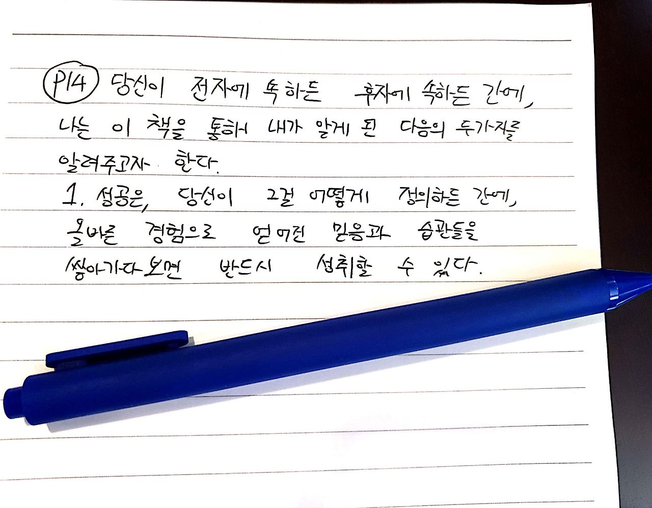 이 책은 자기 계발서의 끝판왕이라고 불린다. 그 이유는 첫 장을 읽는 순간 알 수 있다. 자기 계발과 관련된 모든 내용을 아주 알차게 담았다. 위로, 격려, 구체적인 실현 방법, 경험, 예시, 명언 그 모든 것이 잘 어우러져서 하나의 책으로 '응축'되었다. 그리고 이 책은 읽어서 끝이 아니다. 천천히 읽으면서 하나씩 직접 적용해봐야 한다. 여기서 내가 받아서 잘 쓰고 있는 것은 ‘아침 일기’이다. 아침 일기에는 감사할 것 3개/ 다짐 3개/ 기상 시간 등이 들어가 있으며 노션으로 만들어 놓았기에 차곡차곡 쌓이고 있다.