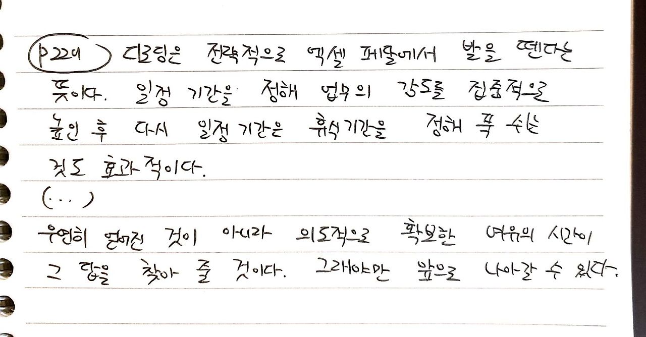 이게 포인트다. 특히 내가 이게 잘 안 되었는데 어쩌다가 갑자기 주어진 휴식은 달콤할지언정 얼마 안 가서 나를 불안하게 만든다. 차라리 하루 전이라도 결심하면 훨씬 나은데, 그게 아니면 너무 힘들다. 특히 힘든 일이 많은 나날일수록 우연과 의도의 경계가 엉망이 된다. 너무 힘들고 힘이 빠져서 그냥 다 놓아버리기 때문이다. 나는 정말 노력한 서류가 탈락할 때마다(서류 탈락은 진짜 힘이 빠진다... 면접과 인적성 탈락이랑은 다른 기분...) 울면서 홈 트레이닝을 하고 해야 할 일을 한다. 그리고 여전히 다음날 7시 전에 일어난다. 기상은 친구들과 내기를 하고 있어서 가능한 거지만. 요즘 피곤해도 최대한 무언가를 하고, 멀쩡해도 결정한 날이라서 취준을 쉬면서 밀린 글을 쓴다. 이럴 수밖에 없는 게, 평소에 글을 쓰는 사람이 이력서와 자소서만 주야장천 쓰다 보면, 하루에 글을 더 쓸 수가 없게 된다. 그래서 글을 쓰는 날은 이력서와 자소서를 마무리 한, 다음날에나 시작할 수 있다.