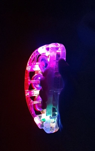 선물 받은 led탬버린. 불 끄고 이걸 흔들면 신명 난다. 기분이 좋아지진 않고, 그냥 한번 피식 웃게 된다. 옆방 언니에게 미러볼이 있으므로 정말 힘들 때 빌릴 예정이다.