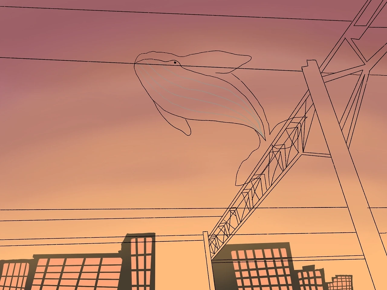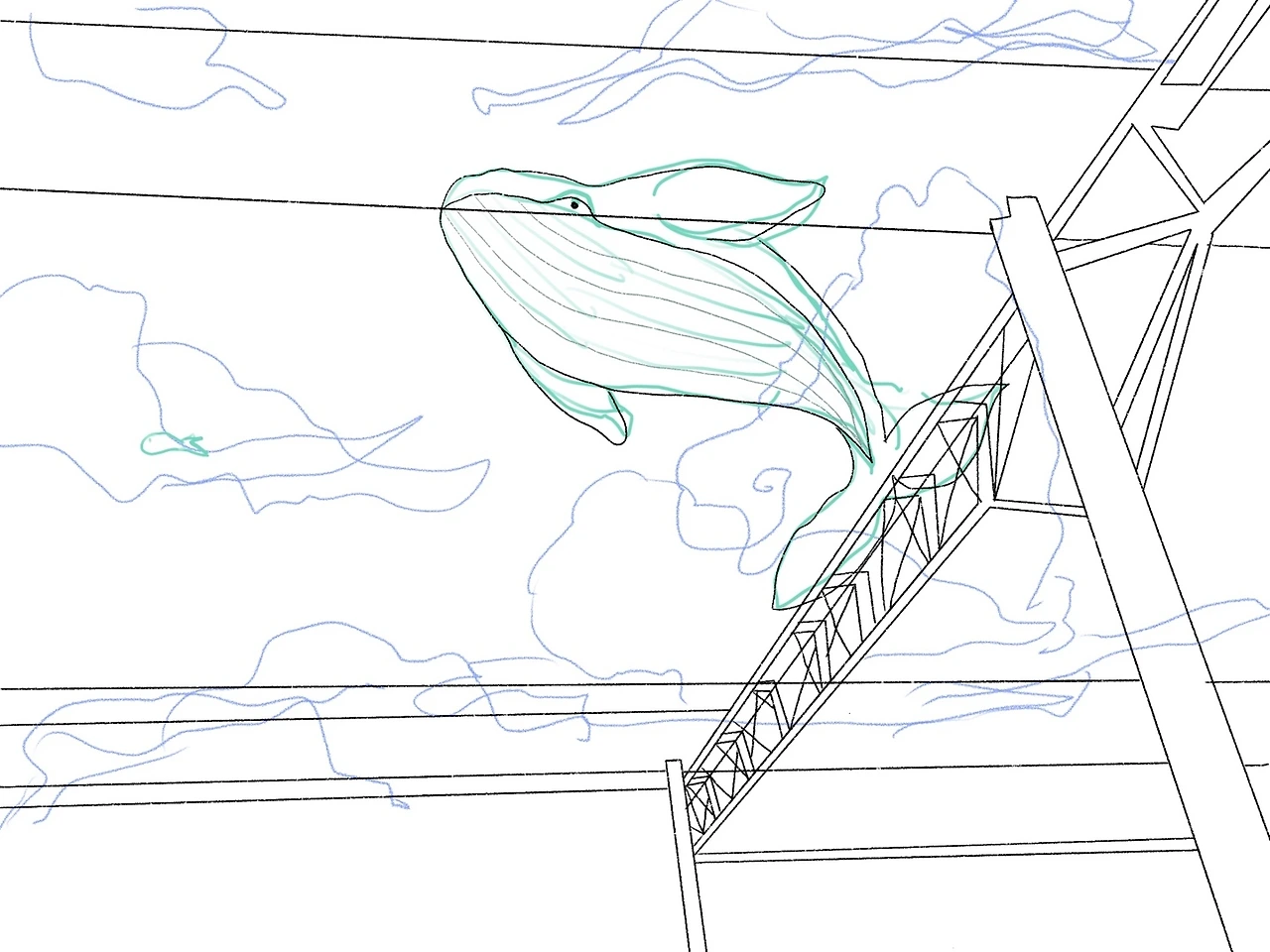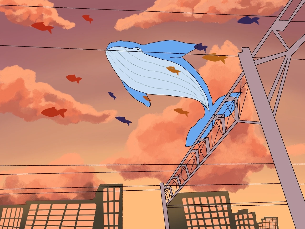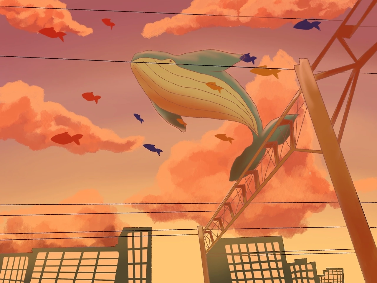 심지어 파란 하늘도 아니고 구리구리한 하늘을 헤엄치고 있다
