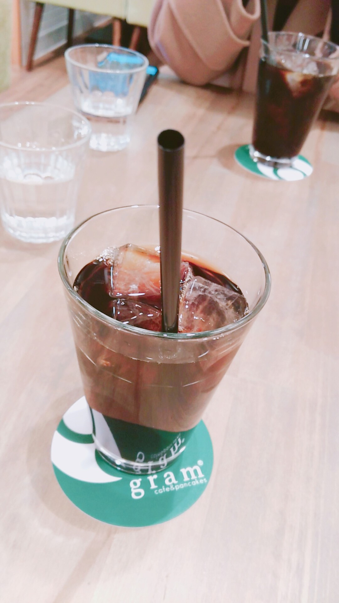 한정 3단 핫케이크가 유명한 그램. 우리가 갔을 때는 아직 그 핫케이크를 주문할 수 있는 시간이 아니어서, 미리 주문하고 커피 먼저 받았다. 달달한 것에는 아이스아메리카노지! 하지만 여기서는 블렌딩 커피라고 하더라. 전부 핸드드립인걸까? 사실 커피를 많이 마시긴 하지만 전혀 모른다. 교양도 뭣도 없는 커피 포스팅이군.