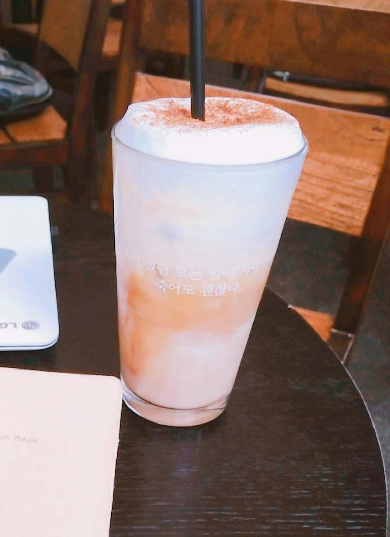 그렇게 달달한 음료도 시켰지만, 역시 유명한 곳이라 사람이 너무 많이 와서 눈치도 보이고 서로의 목소리도 잘 안 들려서 주변의 다른 프랜차이즈 카페로 도망쳤다.
