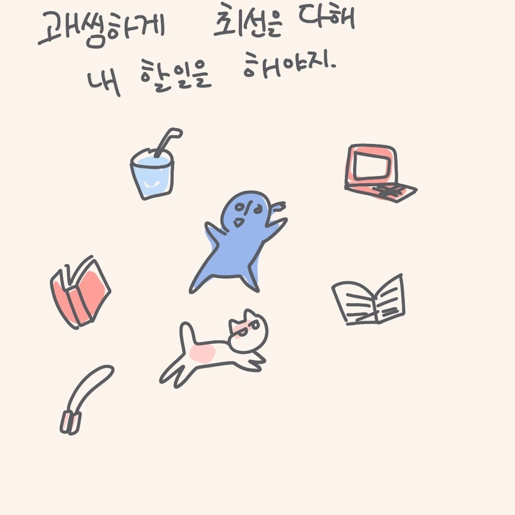 나는 어제의 나보다는 좀 나았고 일주일전의 나보다는 많이 한심하다. 어제는 생각이 많아서 거의 1년만에 잠을 못 잤다. 하지만 운동을 하고 카페에 나와서 글을 쓰고 곧 인스타툰도 올리면서 면접 준비를 하려고 한다.