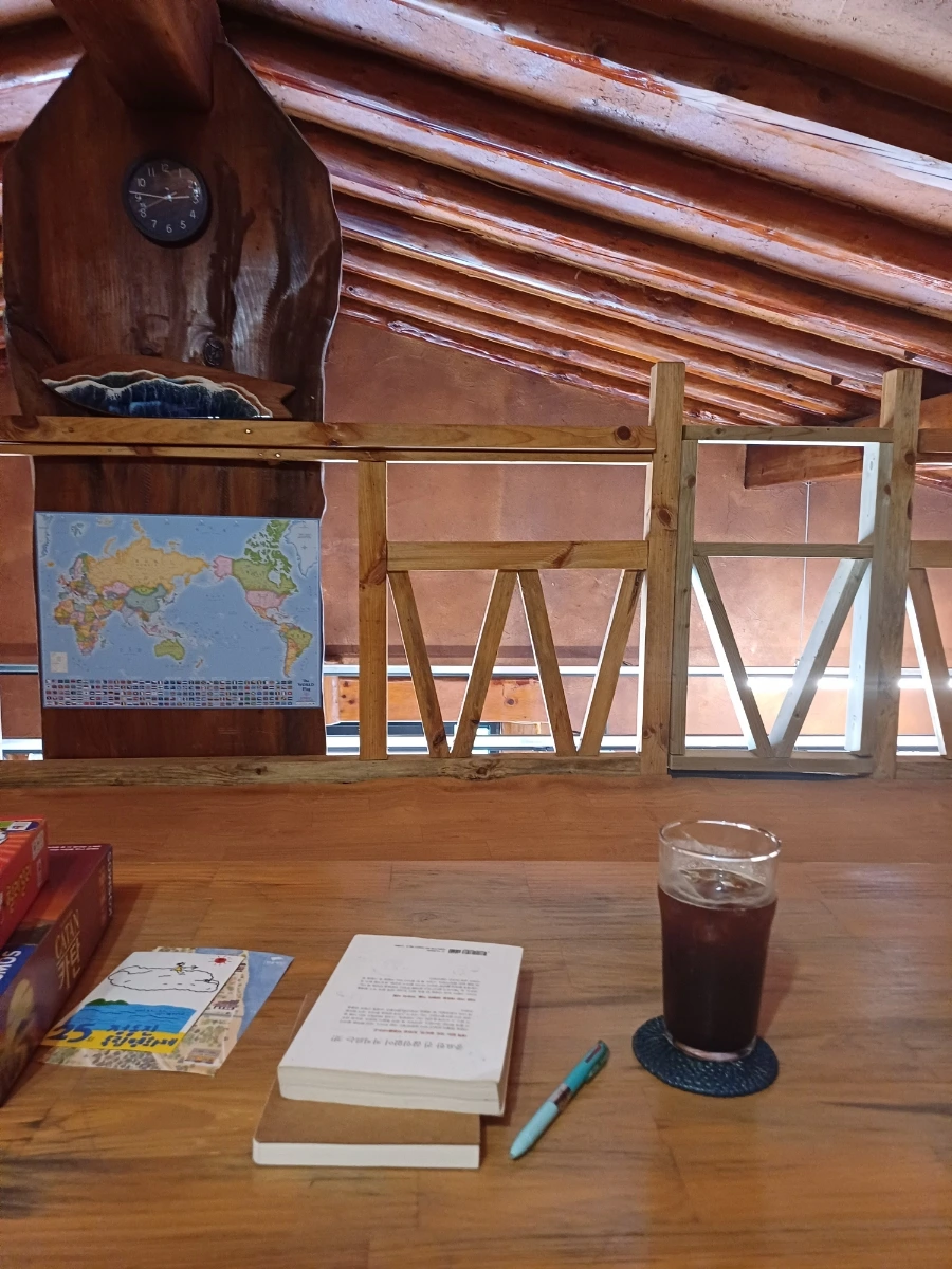 청도 오마이북은 북카페입니다. 그러나 카페 위층에 게스트하우스로 1인으로 묵을 수 있는 두어 개의 방이 있죠. 즉, 책을 카페에서 마음껏 읽다가 잘 시간이 되면 알아서 게스트하우스 숙소로 가서 자면 됩니다.