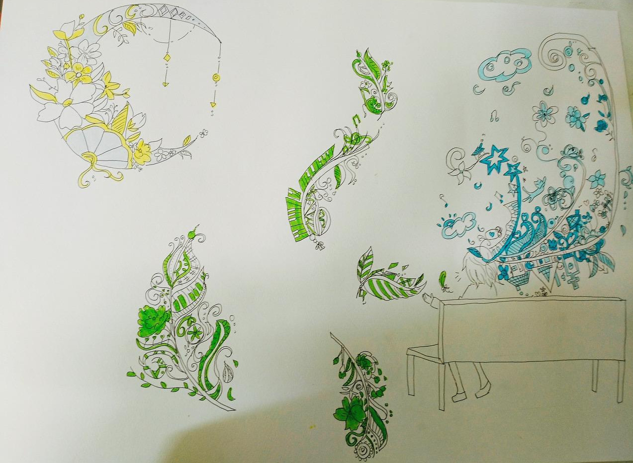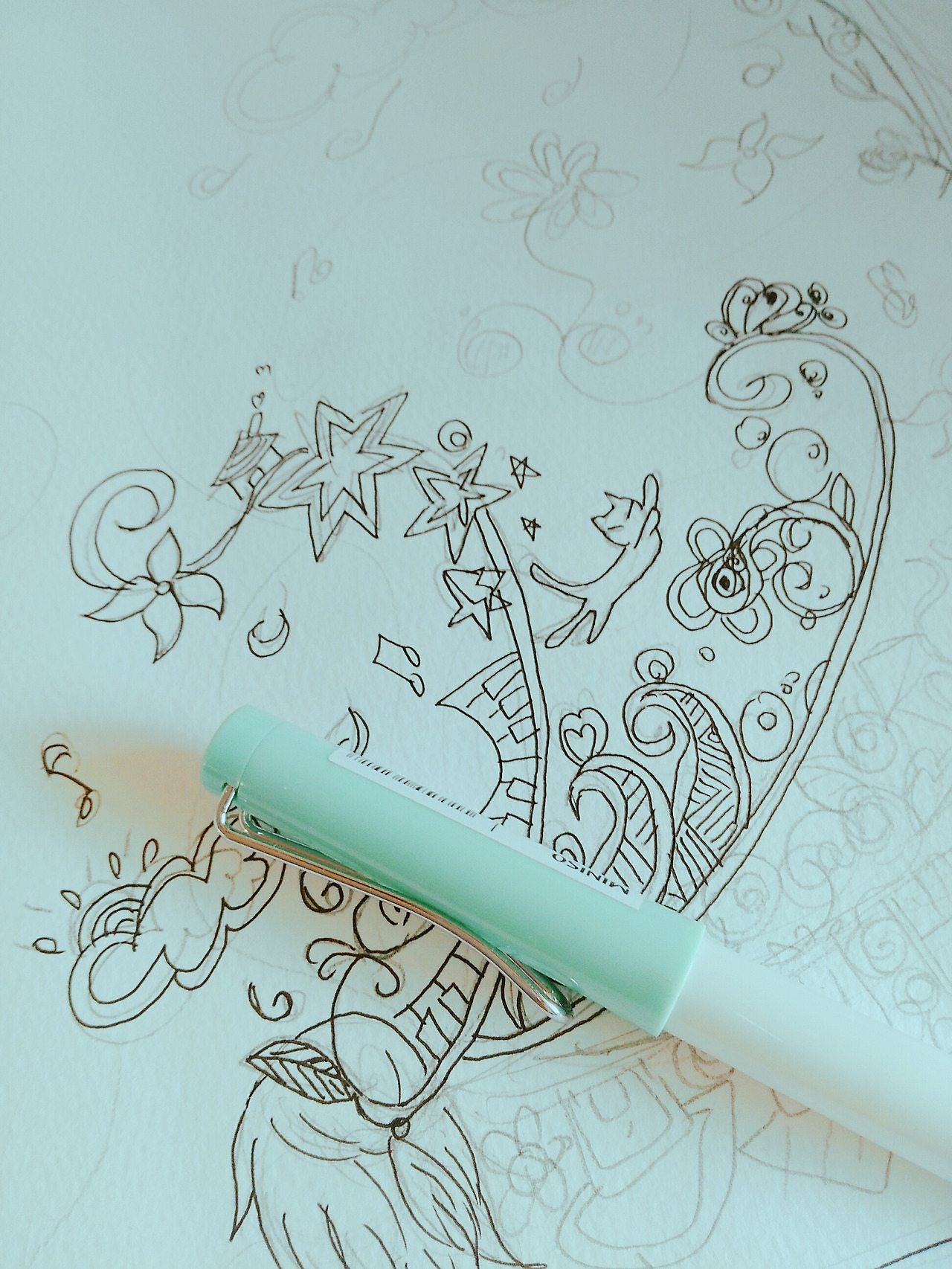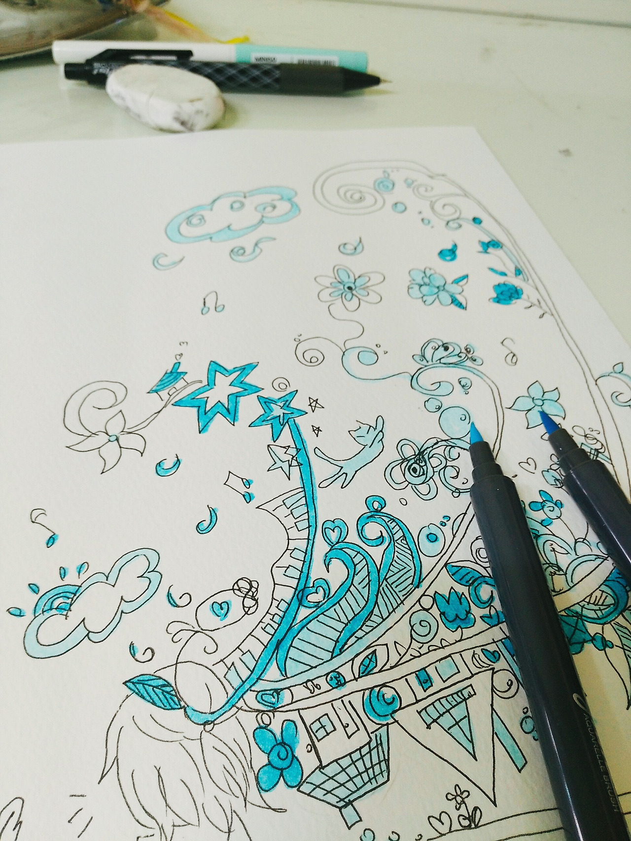 과정에서 걱정했던 만큼, 결과가 어떻든 의외로 큰 타격은 없었다. 그래도 걱정해야 할 것 같았다. 잠을 자고 쉬고 그림을 그리고 책을 읽고 글을 쓰는, 말 그대로 ‘과정이 좋아서’하는 일들마저 내가 원하는 결과가 나오지 않을까봐 과정이 힘들어졌다. 어느날은 곧 잘 시간인데 또 잠을 못 잘까봐 두려워하면서 또 찡그리면서 그림을 그리고 있었다. 내 방에는 고2때 시험 끝나고 해방감에 4절지에 크게 그린 그림이 걸려져있었다. 하도 오래 걸려져있어서 벽지 같은 느낌에 별 감흥이 없었는데 그날따라 그게 눈에 들어왔다. 어떻게 보아도 굉장히 내 맘에 드는 그림이다. 그런데 완성본을 들고 맘에 들어했던 기억은 희미하고 그림 그리는 내내 엄청 즐거웠던 기억만이 생생하다. 그때 나는 친구에게 마카를 빌렸었고, 캐릭터들의 간지(!)를 위해 멋진 옷들을 검색해서 디자인했으며, 캐릭터들의 두번째 간지(!)를 위해 붓펜으로 멋들어지게 효과도 냈었다. 그때는 타블렛도 뭣도 없었고, 인체비율이 어떻니 손을 잘 그리니마니는 신경도 쓰지 않았다. 그러니까 지금 그 그림을 자세히 훑어보면 고칠 것들 투성이일텐데 보면 볼수록 맘에 들었다.