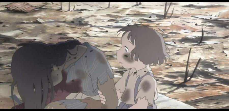 하지만 스즈의 오빠가 죽어 유골로 돌아오고, 국가의 전쟁으로 인해 희생되는 개개인들이 점점 더 많이 등장하기 시작한다. 하지만 극은 이때까지도 큰 슬픔을 담아내지 않는다. 인물들이 오열하는 장면도, 극적으로 배경음이 깔리는 순간도, 없다. 따뜻한 하늘과 바다. 그림 그리기를 좋아하는 스즈의 평범한 일상. 먹을 것이 없어 몇 가지 찬을 가지고 부풀려 상을 내놔도 그저 허허 거리며 웃는 가족. 이런 것이 전부다.
