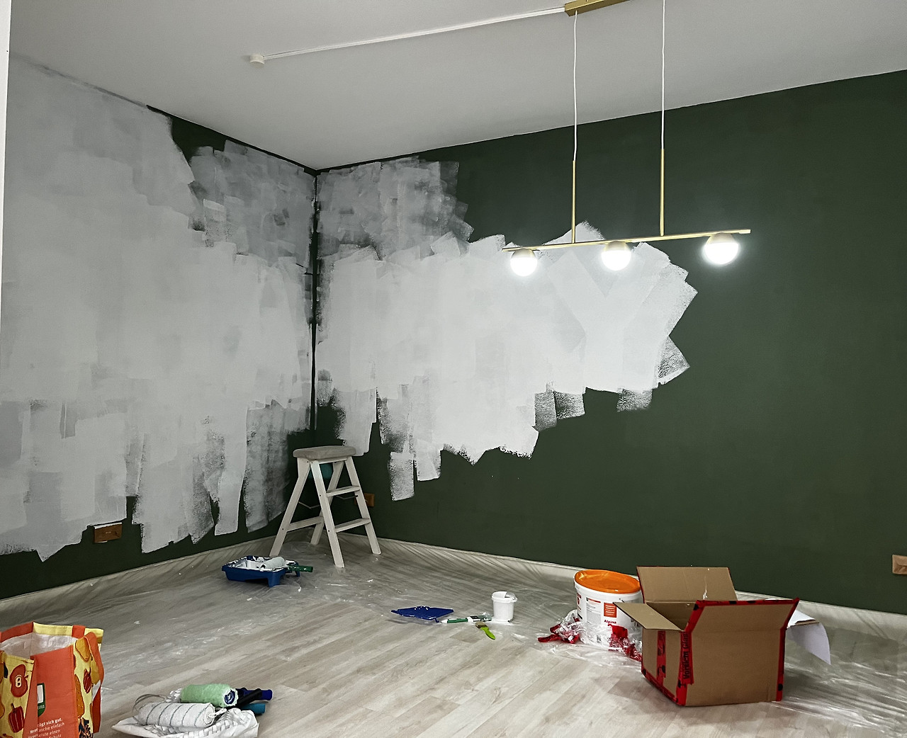 나이가 한 해 한 해 들 수록 좋은 것은 내 경험치가 쌓인다는 거다. 물론 피로도도 쌓이지만, 이런 어처구니 없는 상황이 벌어졌을 때 나는 매 해 더 빠르게 정신을 차리는 어른이 되어가고 있었다. 발을 동동 구르기 보다는 일단 쿨하게 반차를 쓰고 간 나 자신을 칭찬하면서 도착해보니 그나마 다행힌 건 기본적인 셋팅은 되어있었다. 친구들이 왔을 때 너무 놀라게 하고 싶지 않아 페인트칠을 혼자 먼저 하기 시작했다. 사실 난 이런 페인트칠하는 날을 좋아한다. 내가 책임지고 해야하는 부분에서 스트레스가 올 뿐이지. 어린 아이들이 벽에 마구잡이로 낙서하고 쾌감을 느끼는 건 본능에서 비롯된 걸 거라는 게 내 이론이다. 평소에는 조심히 자국도 안남게 해야하는 벽에 페인트를 왕창 칠하는 일은 알 수 없는 쾌감을 느끼게 한다. 그래서 벽을 초록색으로 칠할 때도 잔뜩 그림부터 그리고 시작했었다. 이 날도 나는 다시 낙서부터 시작했다.