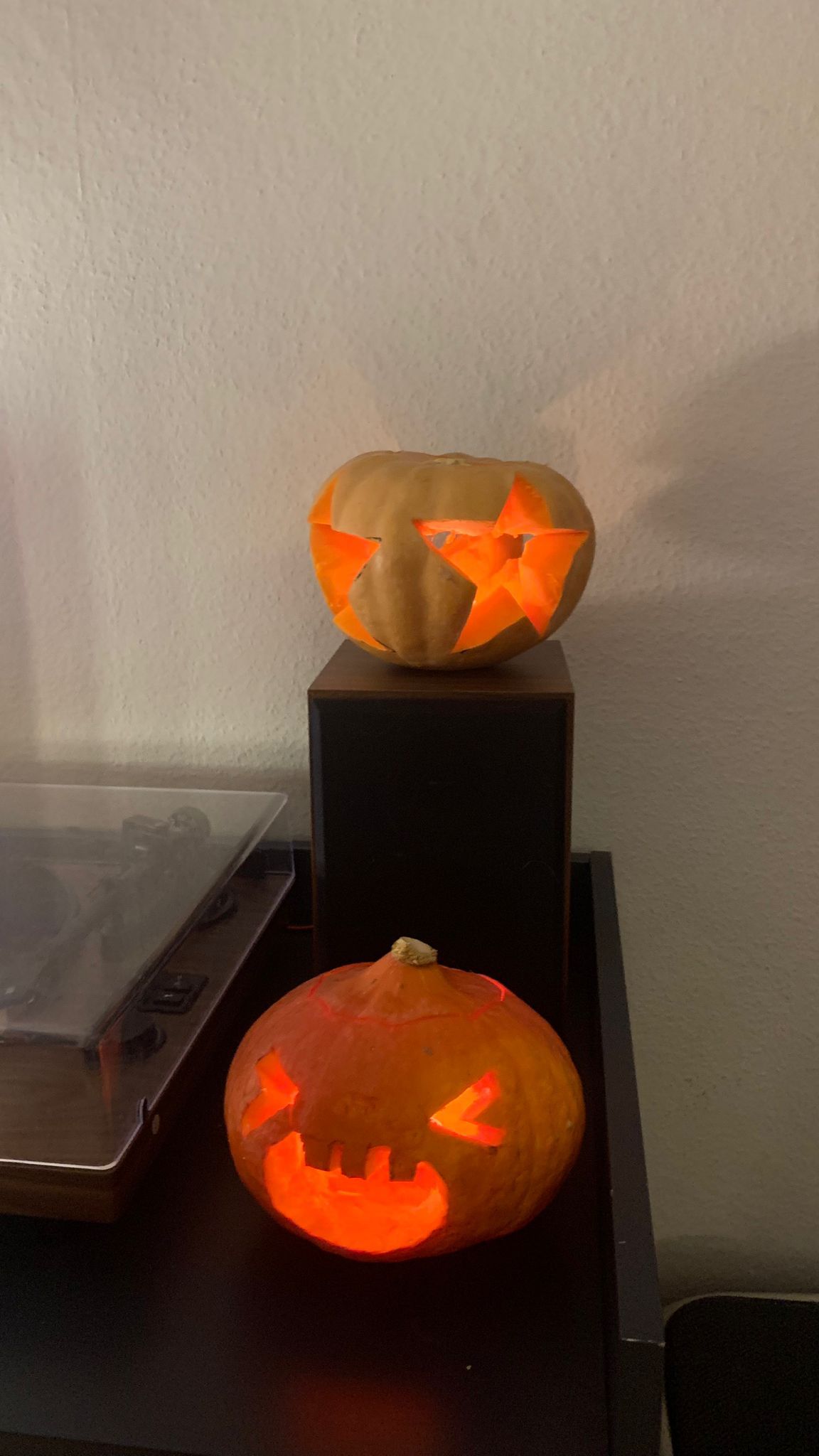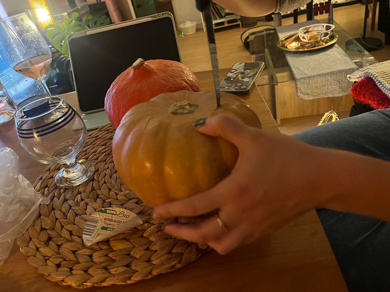 고양이들을 무릎에 올려놓고 조심히 판 우리의 잭 오 랜턴들. 진진은 홋카이도 호박을 잘 사 왔는데 삔새는 비싼 멜론호박을 사 와서 카빙 한 부분은 우리가 자꾸 날로 먹었다.