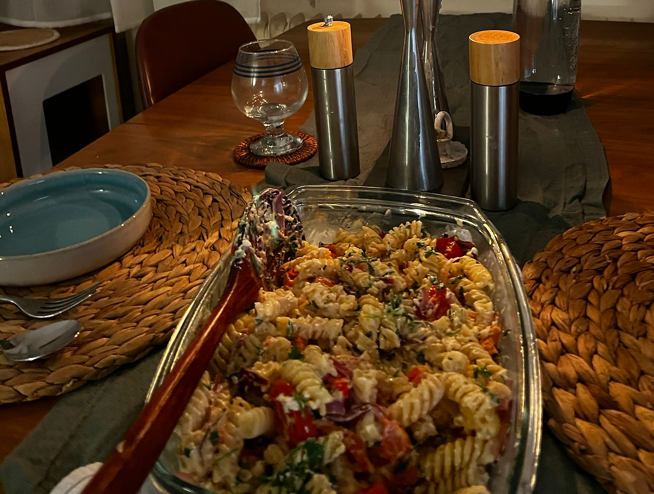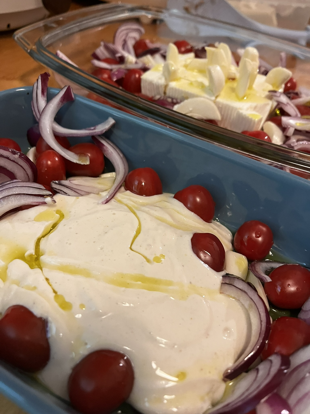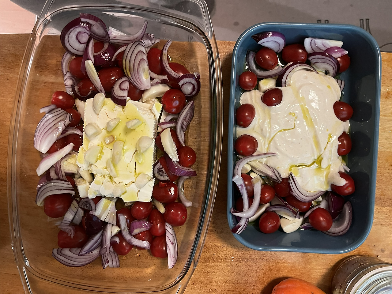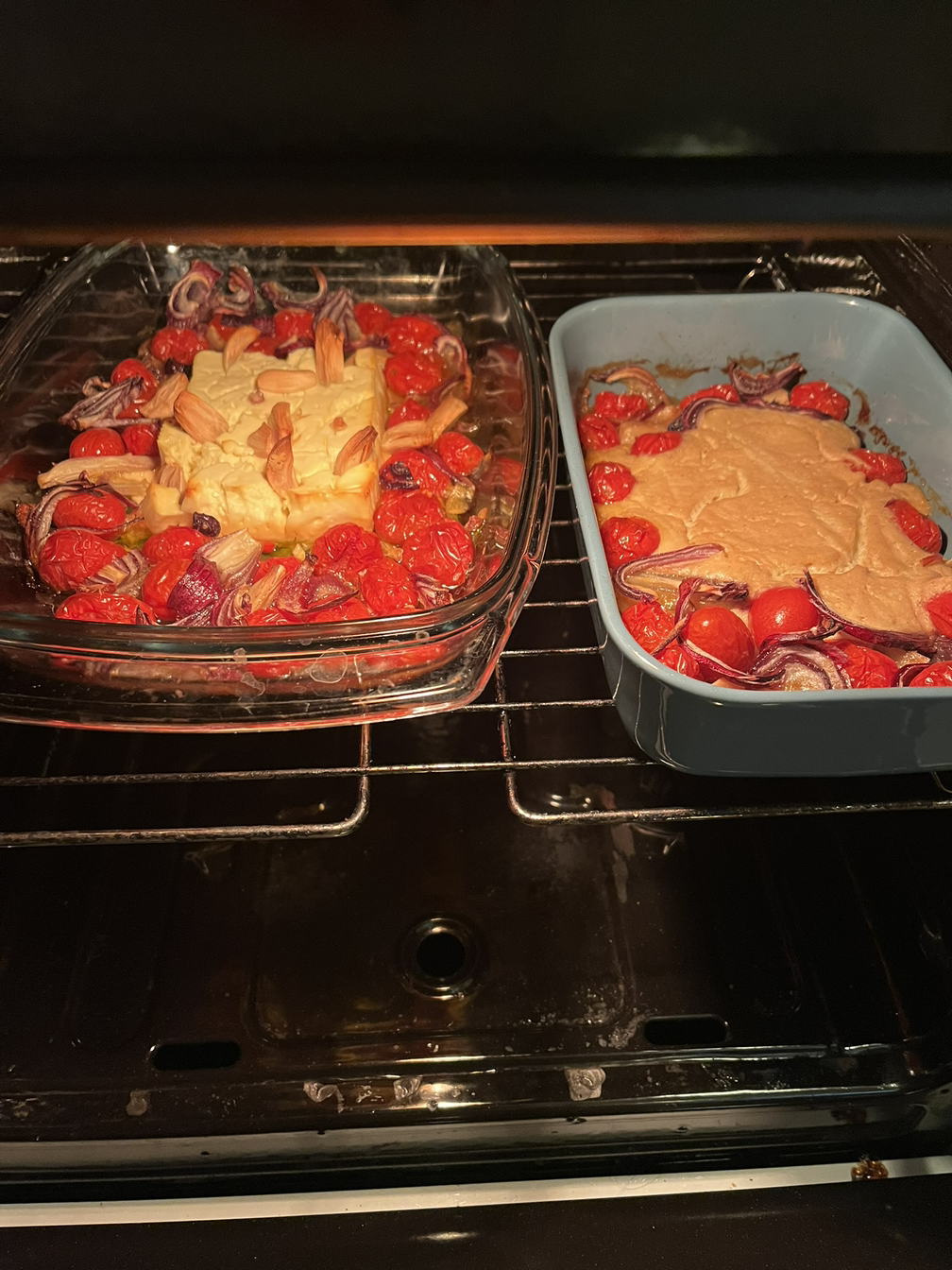 핑계는 진저 브레드 하우스를 만드는 거지만 한국인의 초대에 밥이 빠지면 그렇게 서운하다는 게 내 생각이다. 그래서 빨리 먹고 치운 다음, 진저브레드 하우스를 만들 수 있도록 간단한 파스타를 준비했다. Instagram과 틱톡에 유행에서, 심지어 온라인 레시피에 "TikTok 파스타"라는 별명이 붙은 페타 치즈를 활용한 파스타인데, 곤 언니가 해줬던 걸 잊지 못해 나도 종종 친구들이 오면 하곤 한다. 이 날은 특히 이 맛있는 파스타가 페타 치즈가 들어간다는 이유로 먹지 못하는 비나가 우리랑 같은 맛을 느끼고 즐거웠으면 좋겠어서 연구 끝에 비건 페타 치즈가 아닌 두부를 이용한 크림소스를 만들어서 내어 놓았다.