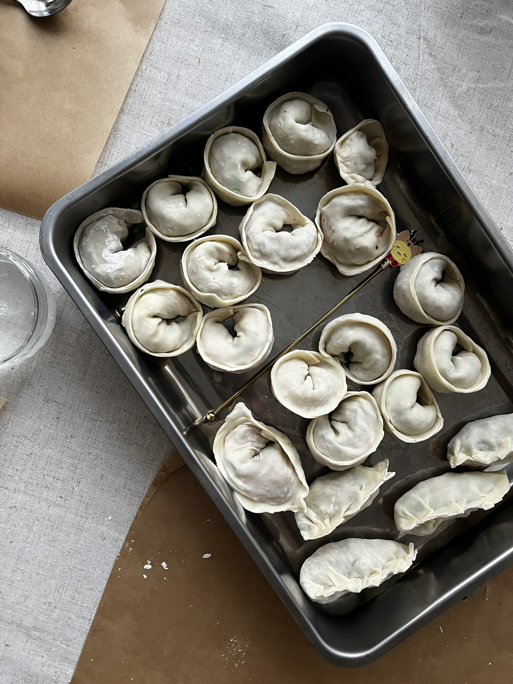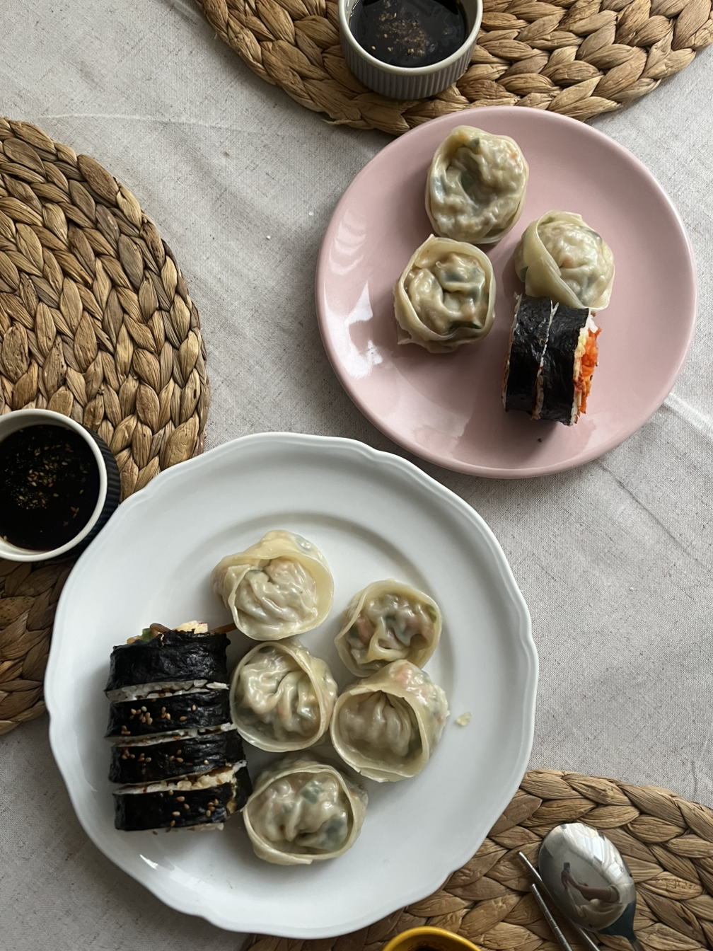 재료를 다 준비할 때쯤 비나와 다른 한국인 친구 쥬진이 도착했고 테이블에 둘러앉아 진짜 명절 느낌이 나게도 티비를 틀어 두고 쓰잘데 없는 대화들을 나누며 만두를 피기 시작했다. 독일에서 나고 자랐지만 부모님이 카자흐스탄계인 비나도 만두와 비슷한 전통 음식이 있어 생각보다 잘 빚었다, 원리는 비슷하니까. 그리하여 어쩌다 보니 내가 제일 못생기게 만두를 빚는 사람이었다. 만두를 빚자고 불러놓고 제일 못생긴 만두를 빚고 있는 아이러니를 가지고 또 한참을 웃어젖혔다.