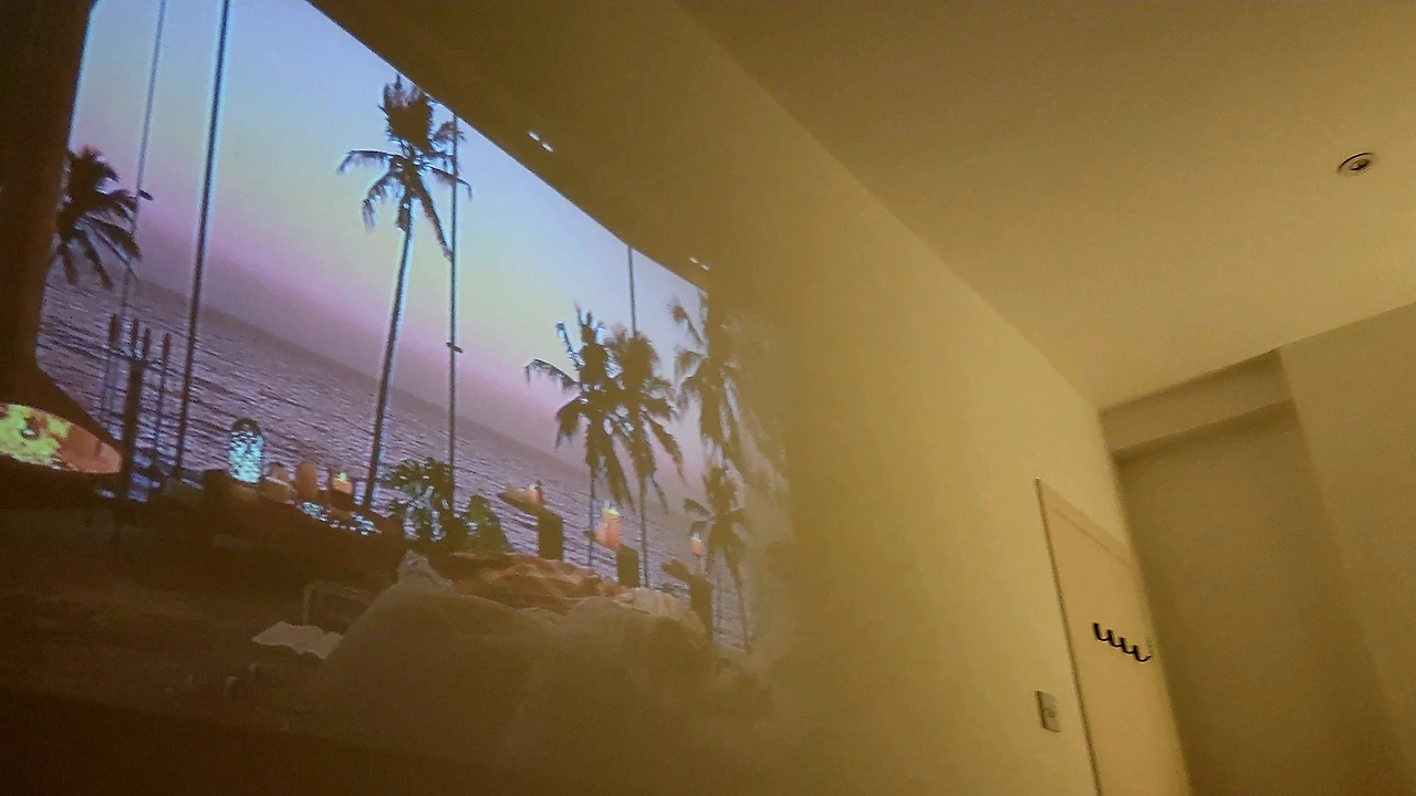 방은 크지 않았으나 깔끔했고 작은 책상이 있어서 간단히 뭘 사 와서 먹기도 좋았고, 하루 끝에 아이패드에 그날 일기를 쓰기도 좋았다. 작은 빔 프로젝트가 있어서 화장하거나 준비할 때 음악 틀어놓고 갬성 있게 있었다. 다만 빔 프로젝트가 쏴지는 벽면이 침대 옆면이라 어떻게 해도 뭘 볼 수는 없었다는 게 함정 –그냥 인스타용 사진 느낌-