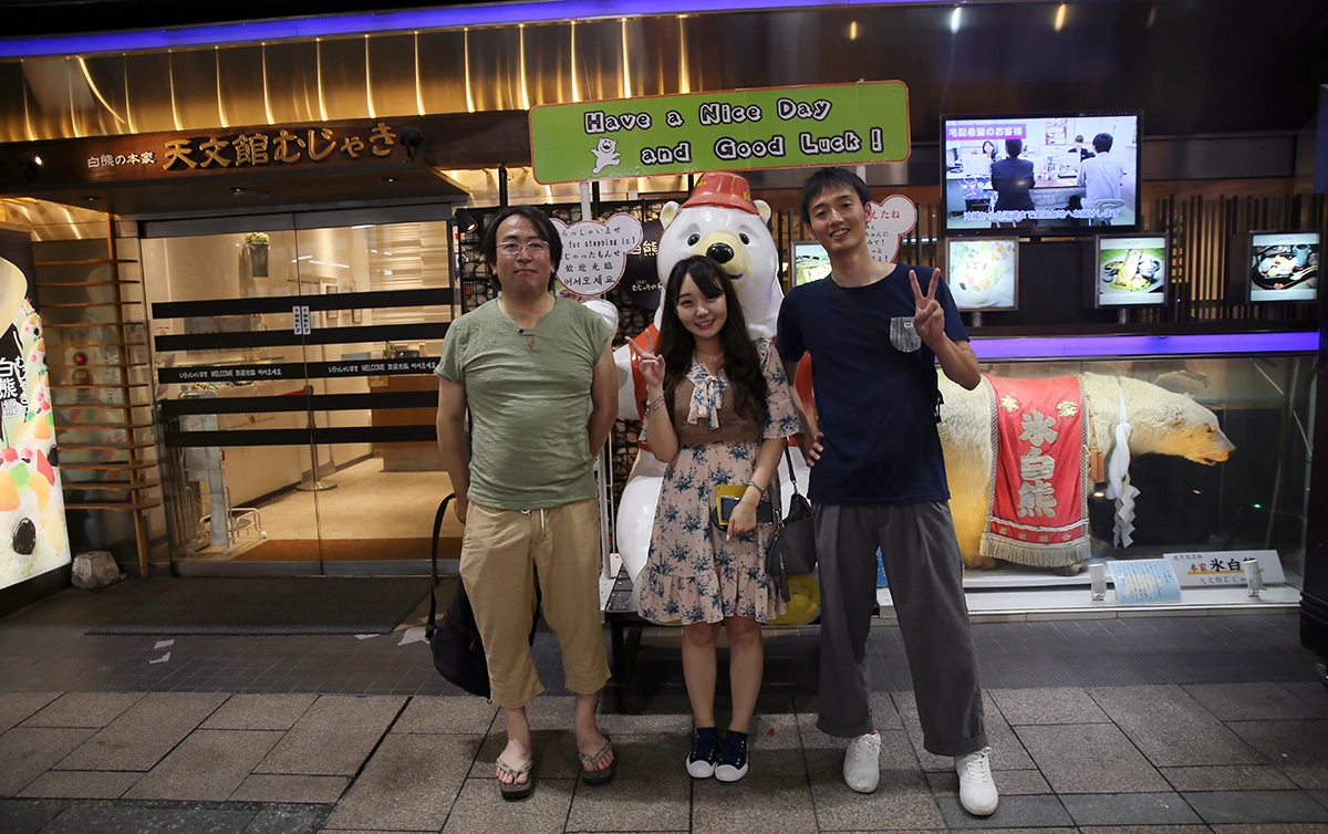 우리는 덴몬칸의 명물 시로쿠마 빙수를 함께 먹었다. 가장 크고 비싼 메뉴를 시켰더니 빙수엔 초코볼부터 매실장아찌까지 오만 것들이 다 들었다. 어느새 친해진 켄과 모토상과 나는 이 창의적인 빙수를 두고 쉼없이 낄낄거리며 그릇을 비웠다.