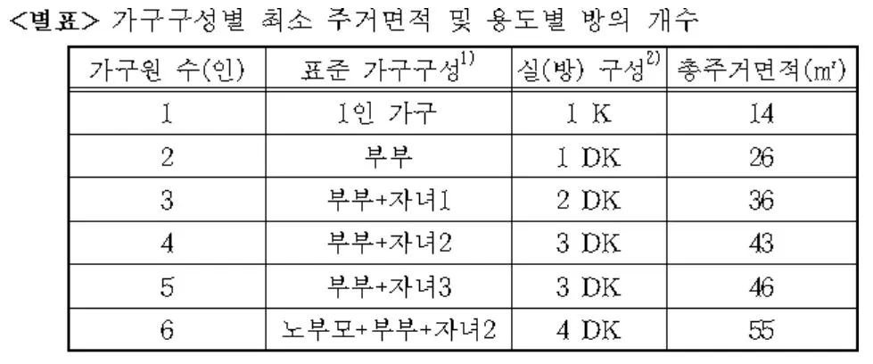 사랑과 행복에도 적정 공간은 필요하다. 현재 국토교통부 기준 4인 가구 최소 주거기준은 43㎡이다. 기준만 놓고 보자면 최근 논란이 된 44㎡(13평)은 4인 가구에 적합한 넓이다. 실제 44㎡(13평)에 살고 있는 4인 가구 당사자들도 충분한 넓이라고 동의할까? 국토교통부의 주거공간 최소기준은 어떤 근거로 마련된 걸까.