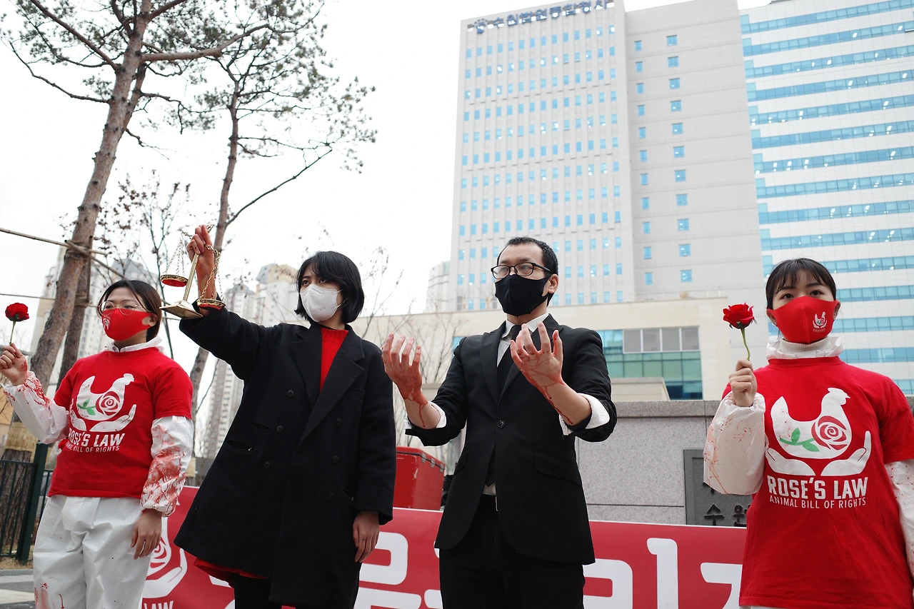 동물권단체 직접행동 DxE(Direct Action Everywhere)는 지난 2019년 8월 용인의 한 도계장을 점거하여 닭들의 도살을 잠시나마 멈추었다. 이른바 락다운 시위였다. 이들은 업무방해죄로 벌금형을 선고받았지만 이에 항소했다. 지난 21일 수원지방법원 제7형사부(부장판사 김형식)에서 락다운 시위에 대한 항소심 선고재판이 열렸다.