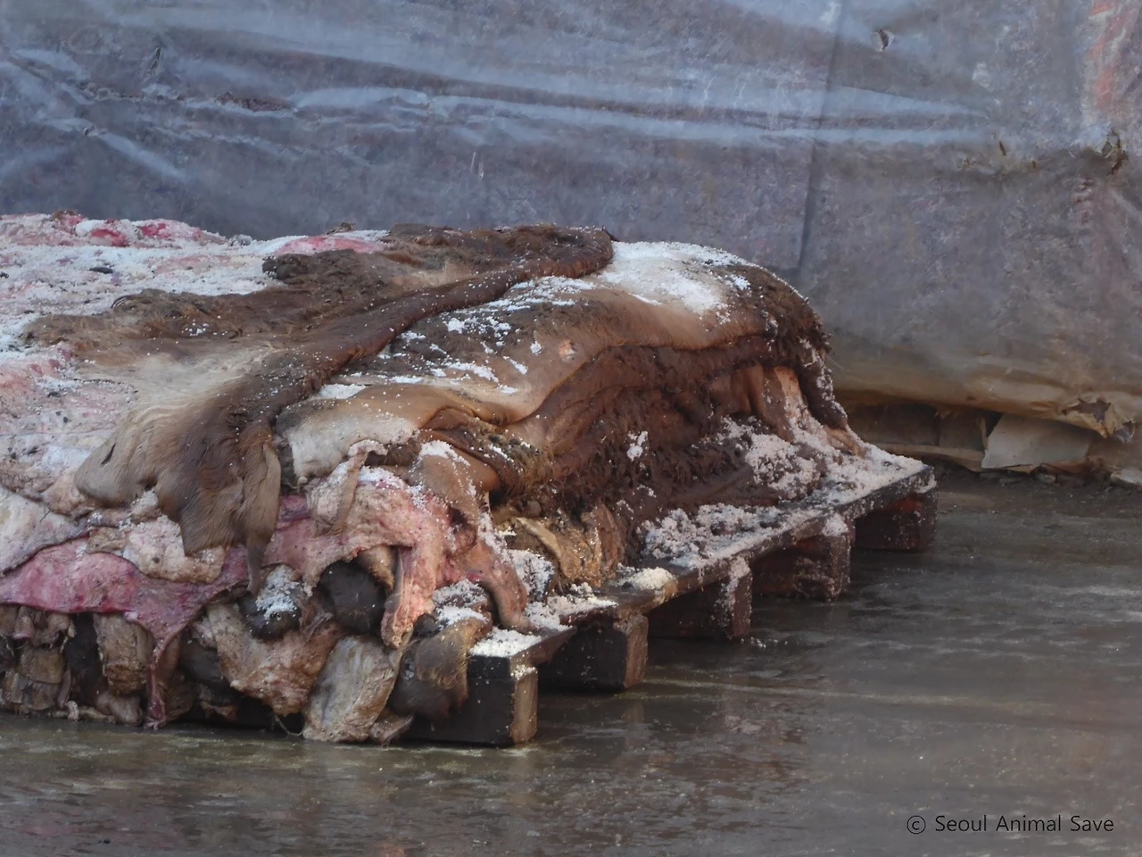 한쪽에는 도살된 소들의 피부가 겹겹이 쌓여있었다. 지게차는 소의 피부를 열심히 트럭으로 날랐다. 천연 소가죽 100%의 의미를 생각해볼 필요가 있다.