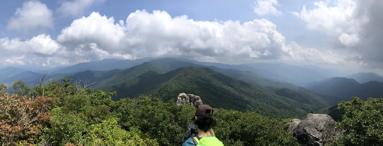 오후 2시 30분. 벽소령 대피소에 도착했다. 굽이굽이 산 능선을 따라 회색빛 안개가 둥둥 떠다니는 풍경이 눈앞에 펼쳐졌다. 초록색 빛깔의 산이 고개를 내밀었다, 숨었다를 반복했다. 라면봉지를 열고 수프를 털어 넣은 후 거꾸로 마구 흔든다. 누런 라면에 붉은 수프가 듬성듬성 묻어 있다. 탁 트인 풍경을 바라보며 생라면을 먹었다. 비상식량이 별미가 되는 순간이었다.