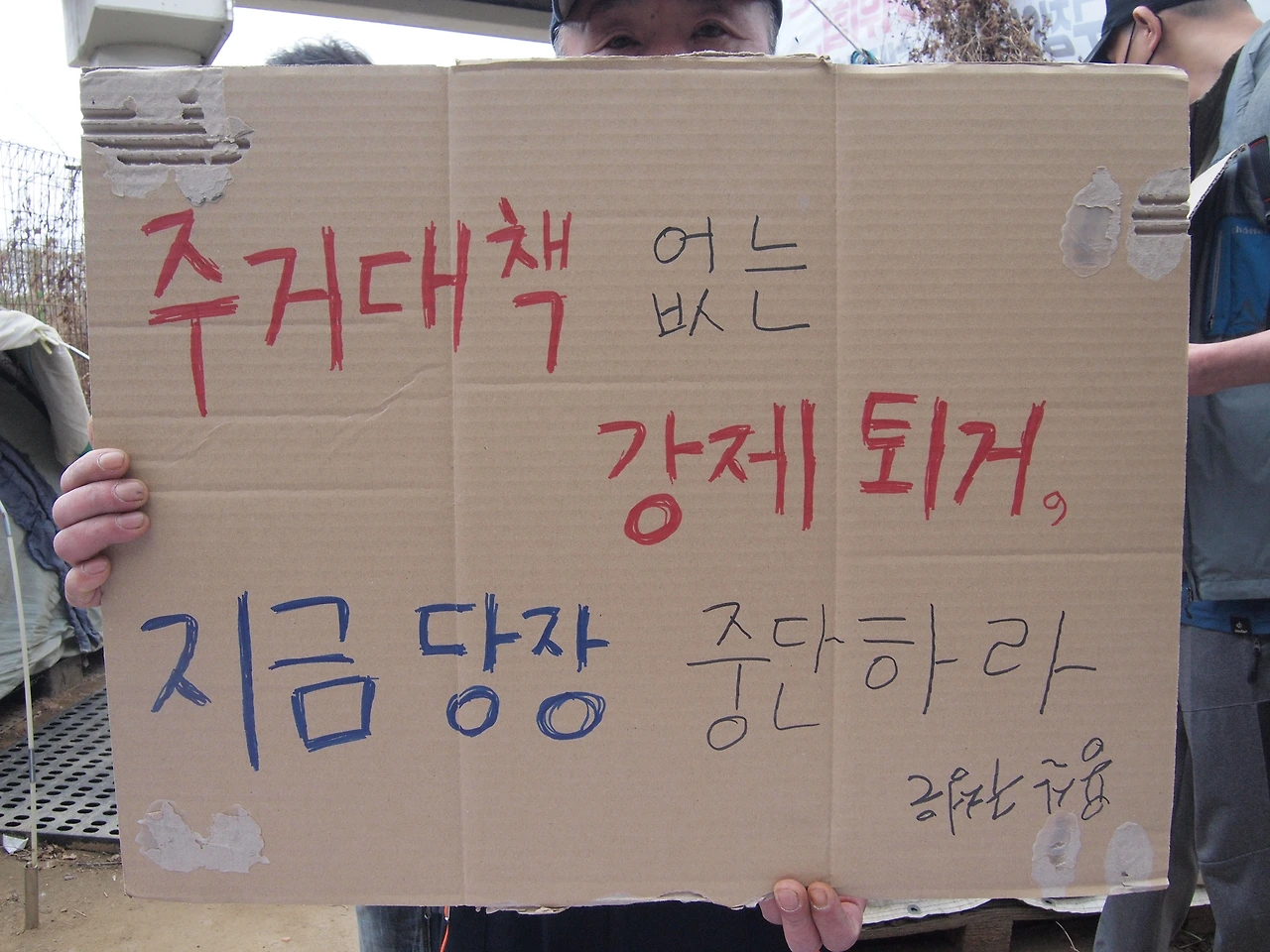 텐트촌 주민과 활동가들은 지금 사태를 바라보며 '2017년의 악몽'이 재현되는 건 아닌지 불안에 떨고 있다. 헌법 35조 1항과 3항은 다음과 같다. 모든 국민은 건강하고 쾌적한 환경에서 생활할 권리를 가지며, 국가와 국민은 환경보전을 위하여 노력하여야 한다. 국가는 주택개발정책 등을 통하여 모든 국민이 쾌적한 주거생활을 할 수 있도록 노력하여야 한다. 만약 텐트촌 주민의 주거권도 보장되지 않는다면 헌법에서 말하는 주거권은 '빛 좋은 개살구'에 불과할 것이다.