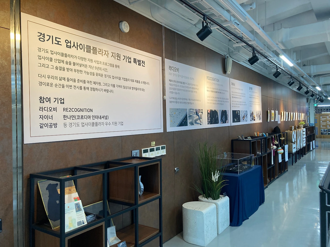 2023년 9월 기준, 업사이클센터는 전국에 9개가 운영 중이며 7개가 설치 예정이다. 그중 경기업사이클플라자에 방문했다. 경기업사이클플라자(이하 플라자)는 연면적 2,660제곱미터 규모로 2019년 6월에 수원시의 경기상상캠퍼스 내에서 개관했다.