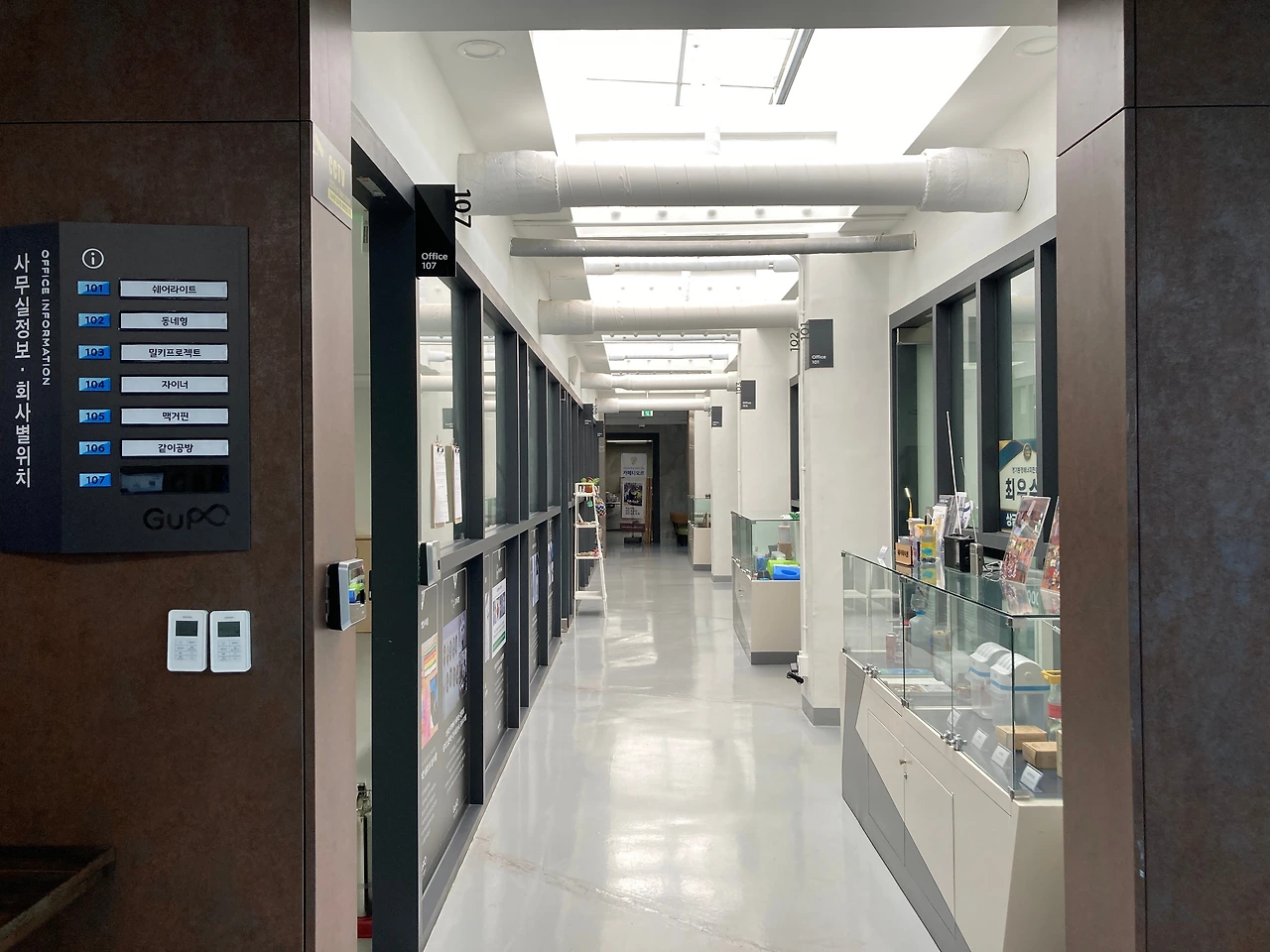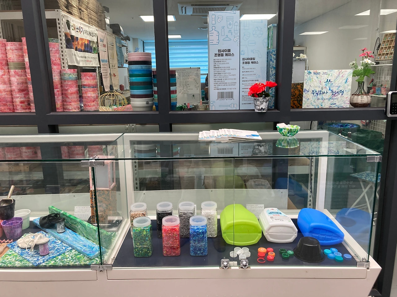 한편에는 업사이클 관련 기업들이 입주한 오피스들이 있다. 플라자의 역할 중 하나가 폐자원을 활용한 업사이클 창업을 하는 이들을 지원하는 것이다. 플라자 내에는 플라스틱뚜껑을 업사이클 소재로 활용해 화분 등을 만드는 업체도 있고 교육 키트를 제작하는 업체도 있다.