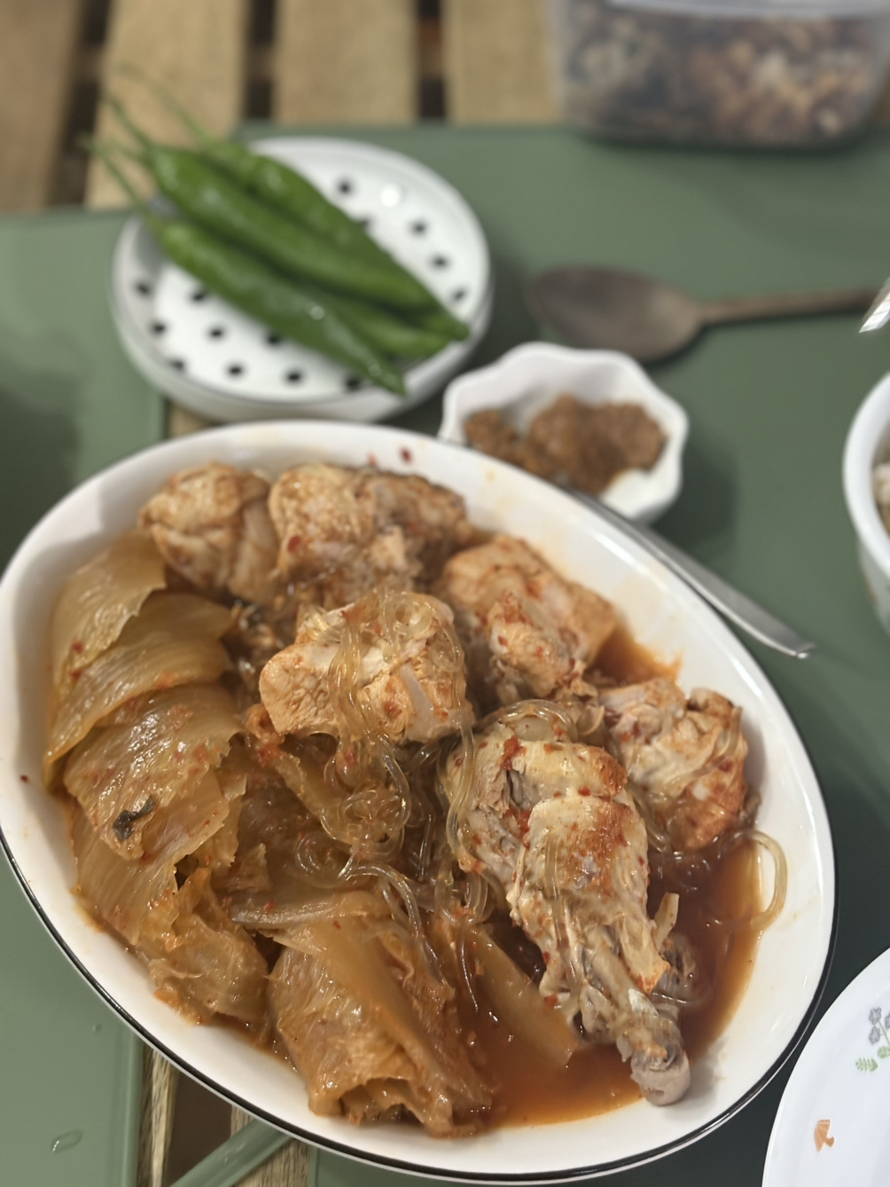 그 맛이 그리워 오랜만에 압력밥솥을 꺼내서 닭과 묵은지를 폭 끓였다.
