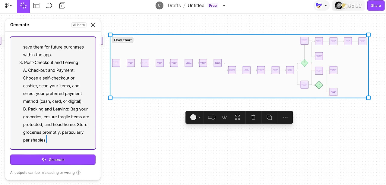 15줄로 단정하게 정돈된 단계별 설명글을 보다가, 새로운 아이디어가 떠올랐다. FigJam AI 베타 기능 중에, 다이어그램을 생성해 주는 기능을 사용해 보기 딱 좋을 것 같았다. ChatGPT의 결과를 복사해 붙였다.
