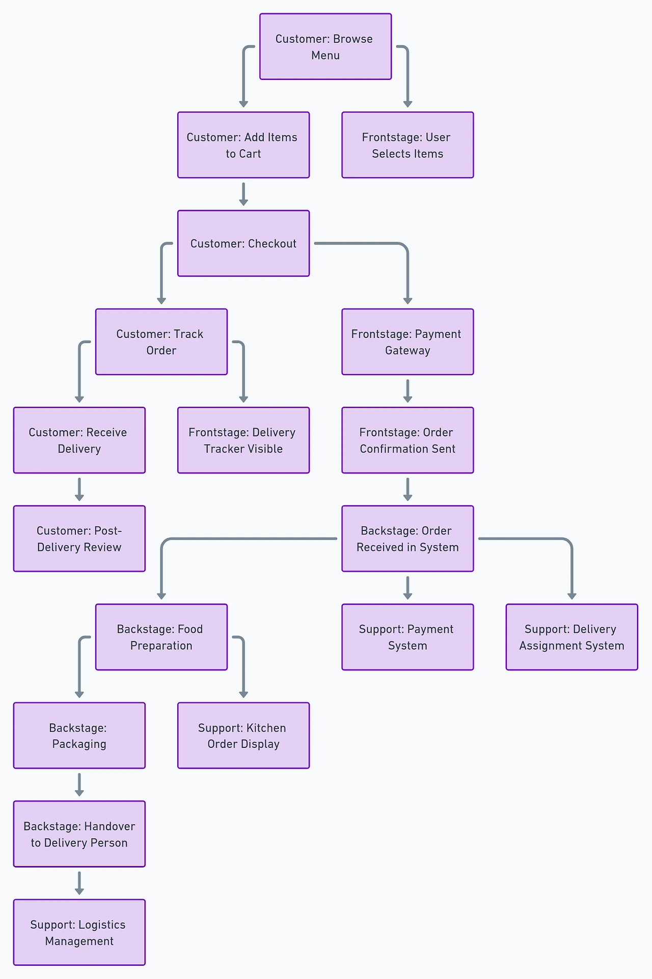 미리 설정된 프롬프트 질문들을 따라서 정보를 던져보았다. 간단한 사이트 맵이나, 전자상거래 흐름을 보여주는 다이어그램 결과물을 보여줬다. 결과는 단순하고 거친(?) 느낌이었다. 서비스의 흐름을 보여줄 때, 화살표의 방향이나, 각 도형의 칼라코딩 등의 구분이 전혀 없어서 정보를 직관적으로 이해하기가 힘들었다. 결과물을 수정하고 싶었지만, 내 프롬프트를 어떻게 조정해야 할지 막막해서, 그냥 다음 단계로 건너뛰었다. 이번에는 GPT에게 서비스 블루프린트 예시를 보여달라고 요청했는데, 결과는 만족스럽지 않았다. 결국, AI에게 정확히 제가 원하는 요청을 이해시키는 게 쉽지 않다는 걸 느꼈다.