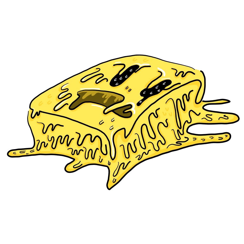 토핑 주제로 선택했던, ‘melting square butter’. 녹아내리는 버터가 좀비처럼 보이도록 작업해봤다. 토핑 아티스트로 참여하고 싶은 NFT 작가들에게 공유하는 구글 시트에서 재료를 선택했었다. 선착순이라서 인기 있는 재료는 금방 동이 났다.