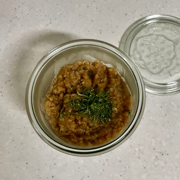 우선 팬에 올리브 오일을 넉넉히 두른다. 오일이 예열되면 조심스레 다진 마늘을 한 주걱씩 넣고 달달 볶이준다. 사실 이 과정으로 90프로는 완성되었다 볼 수 있지만 그럼에도 꽤 길고 험난한 여정이다. 마늘이 서서히 열을 받기 시작하면 매운 향을 뿜어대는데 그 사이 타지 않게 부지런히 뒤적거려야 하니 눈물 콧물 범벅의 오열은 자연히 나의 몫이 된다. 경우에 따라 마늘의 수분이 튀는 경우도 있으니 화상을 입지 않게 정신을 잘 차려야 한다. 종갓집 사골 우리는 자세로 중간중간 멍을 때리며 쉼 없이 마늘을 볶다 보면 어느덧 꾸덕하고 노릇한 상태로 변한다. 노력과 반비례하는 중량에 억울한 면이 없지 않으나 그 또한 받아들일 수밖에 없다. 마지막엔 타지 않게 가스불을 끄고 꿀을 한 스푼을 넣은 뒤 요리조리 섞다가 폼나게 파슬리를 한 움큼 뿌리는 퍼포먼스도 한다. 완성된 잼은 식혀 소독한 유리병에 담아 냉장고에 두고 온갖 음식에 곁들여 먹는다.