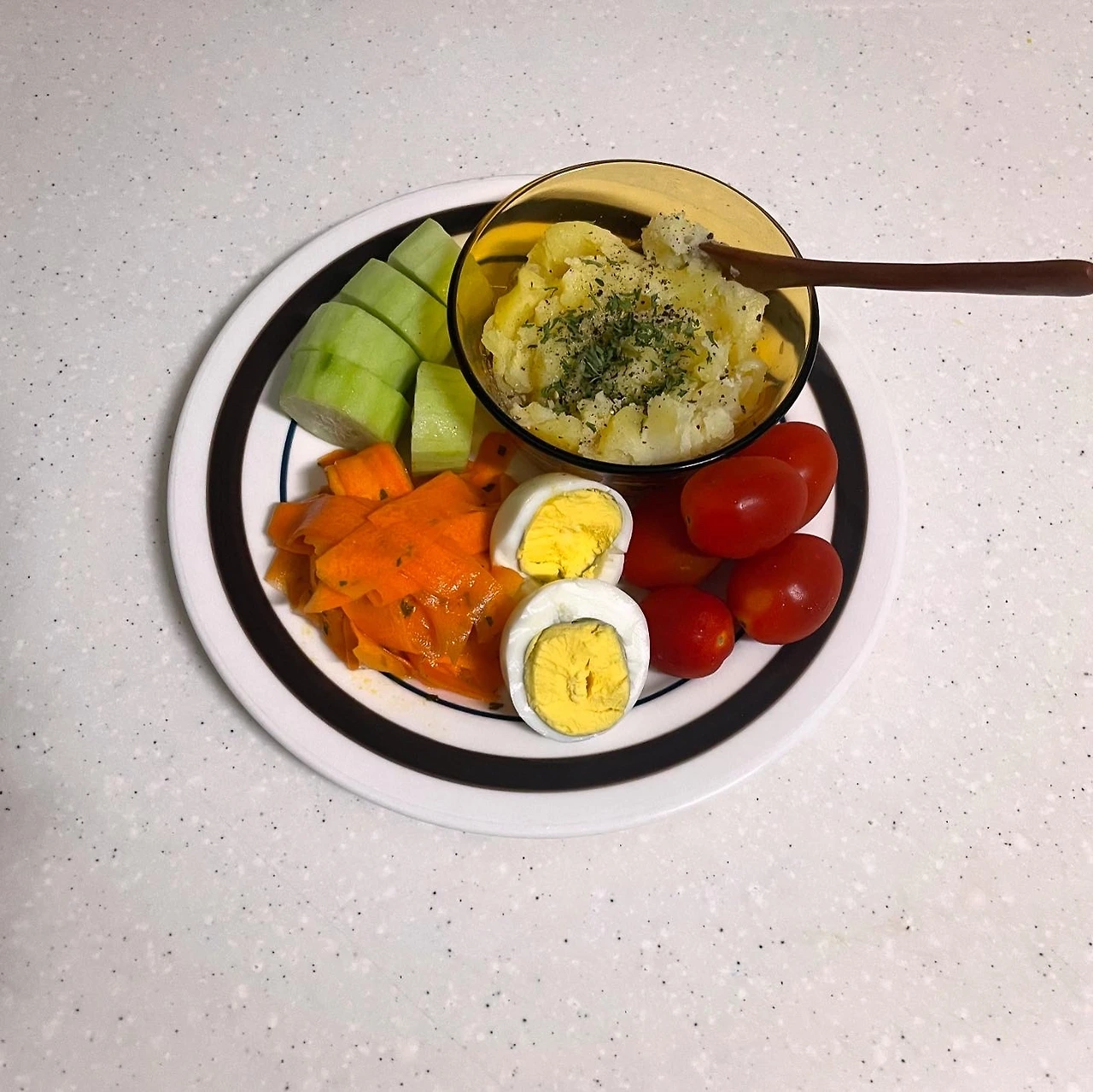 반려인이 출근 전 대사를 치르는 사이 베란다에 있던 건조대를 거실로 들였다. 어제 삶아놓은 행주가 뽀송뽀송하게 마르지 않아 기분이 꿀꿀했지만, 군데군데 초를 켜 둠으로써 마음을 정화시켰다. 어제와 같이 감자와 오이, 당근샐러드, 삶은 계란, 방울토마토를 아침으로 먹었다. 찐 감자가 살짝 지겨워지려해서 두유를 조금 넣고 메쉬포테이토를 만들었다. 아마 다음은 수프가 되지 않을까 싶다.