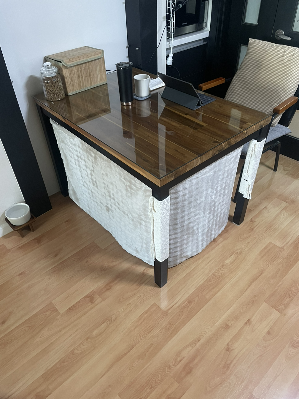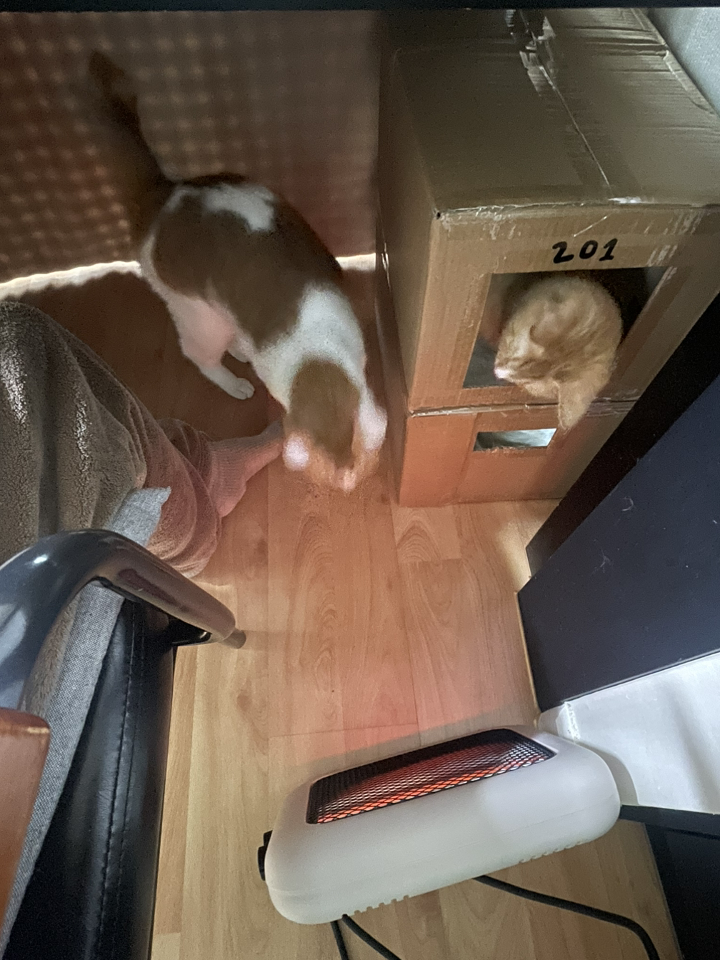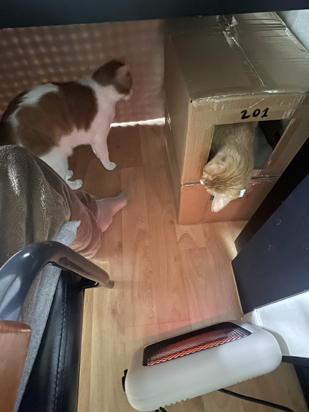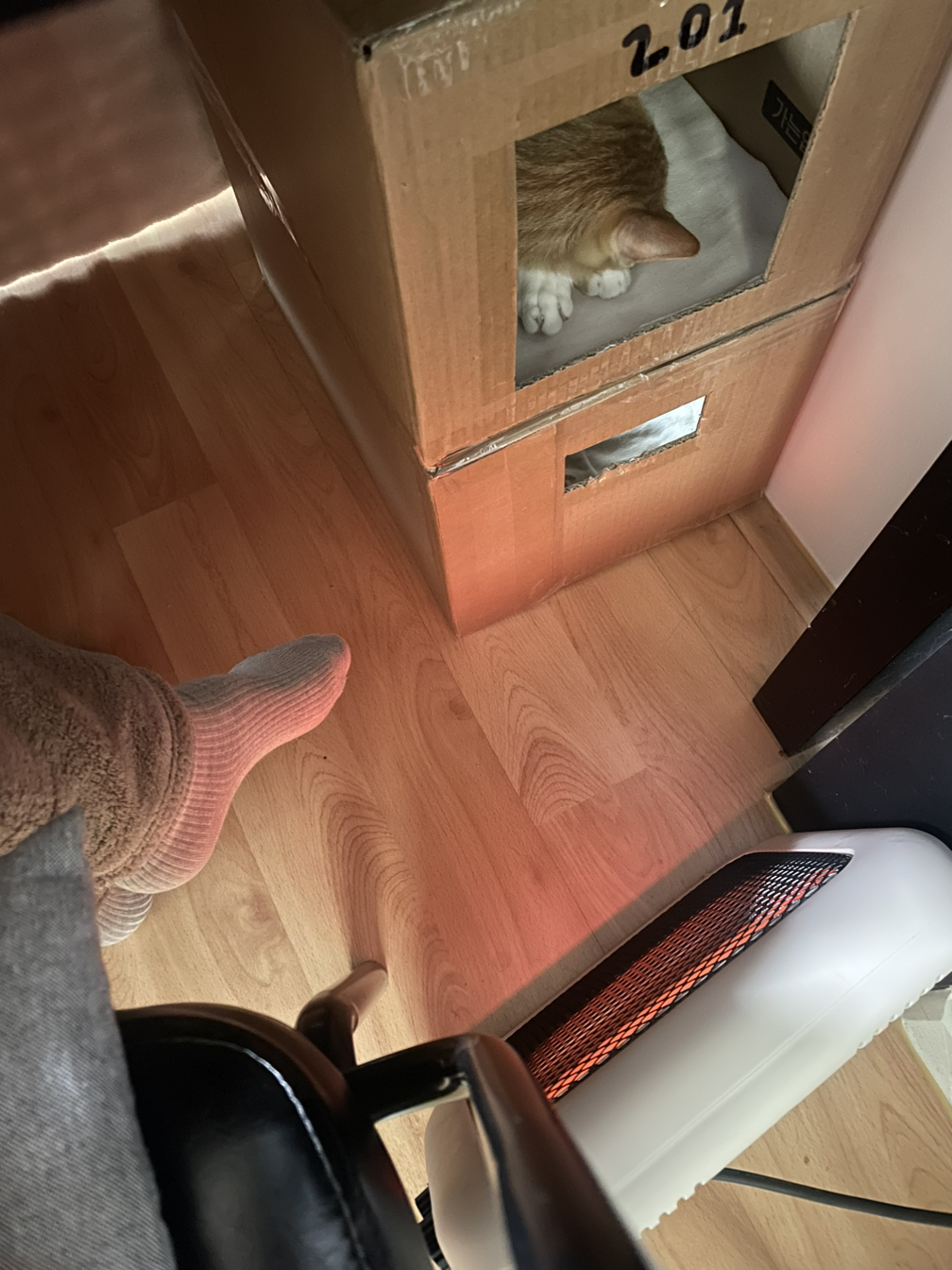 - 드디어 동계용 코타츠를 완성했다. 잡화점에서 작은 고리를 사다가 식탁 안쪽에 걸고 극세사 담요를 옷핀으로 고정해 연결했다. 가장 반기는 쪽은 당연 냥이들이다. 이 글을 쓰는 지금도 룽지는 그 안에서 숙면을 취하고 있다. 안쪽에 히터를 켜두면 오랜 시간 따뜻하게 있을 수 있다. 거기에 냥이들 골골송까지 가동하면 에너지 효율을 극대화할 수 있다.
