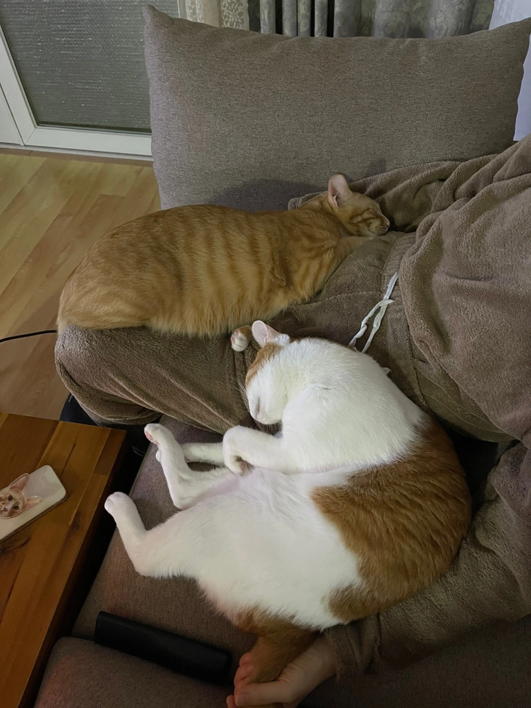 - 날씨가 급격히 추워졌다. 밤마다 소파에 파묻혀 녹아내린 냥치즈를 덮고 있다. 그 덕에 지금까지 춥다는 짜증 한 번 안 내고 평온한 인성을 유지힐 수 있었다. 한겨울 추위로부터 멘털을 지키기엔 고양이 결계만 한 게 없다. 다만… 좀 무겁긴 하다.