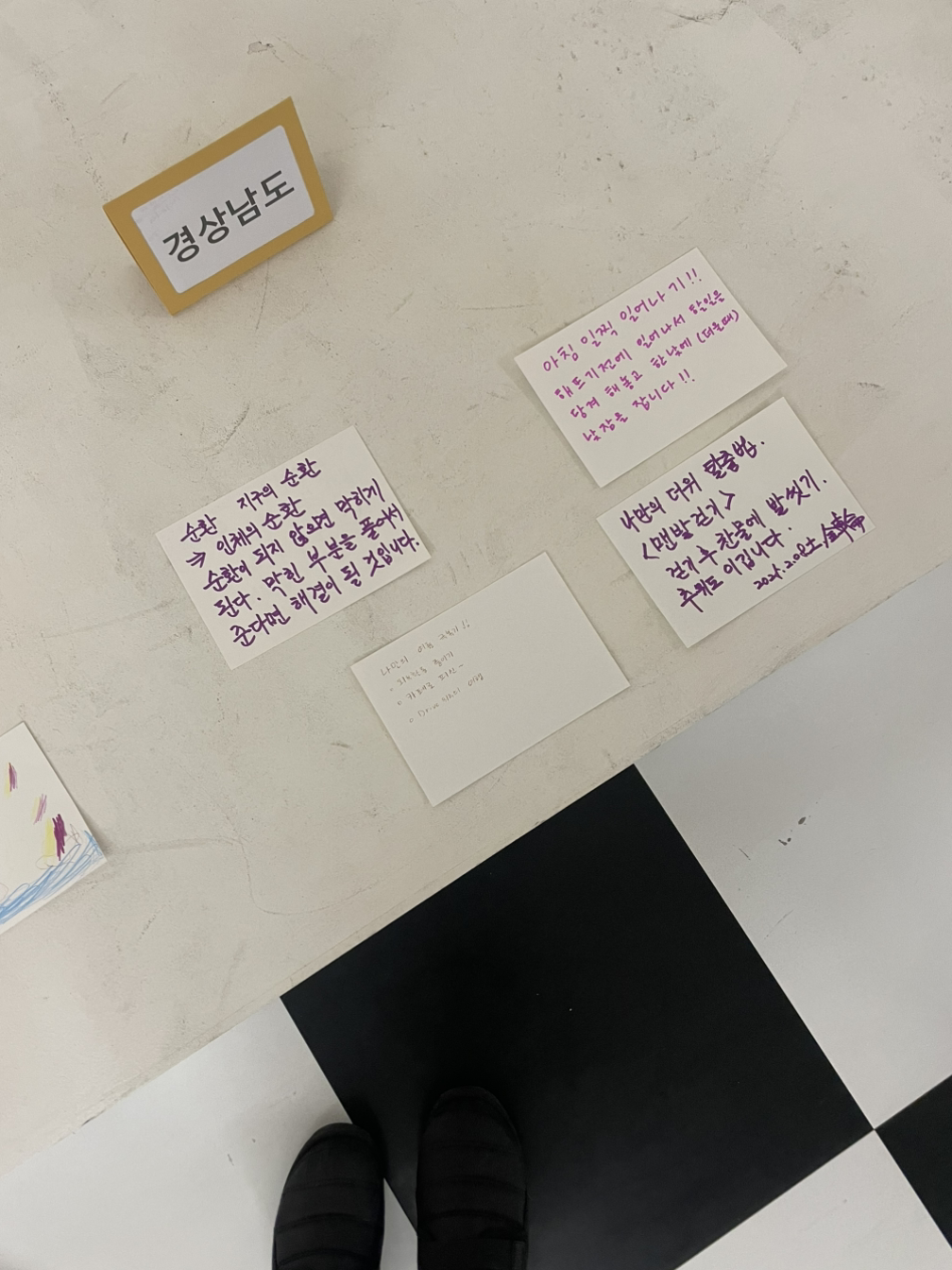 - 모처럼 도립 미술관에 다녀왔다. ‘지금 여기의 기후 이야기‘라는 프로그램을 진행하고 있었다. 극내향인임에도 불구하고 앞장서주시는 분들께 고마워 용기를 냈다. 지역별로 모아둔 기후 위기 체험담을 읽고 관련 인터뷰 시간도 가졌다. 지난여름의 폭염 이야기와 강원도에서 사과가 재배된다는 소식을 들었다. 기후 위기에 대처하기 위한 여러 생각들도 나누었다. 전시를 통해 나눈 대화들은 정책에 반영될 수 있게끔 건의해 주신다고 하셨다. 나라꼴이 왜 이러나고 욕하는 일만큼 작은 것이라도 할 수 있는 선에서 바꾸려는 마음도 필요하다는 생각이 들었다.