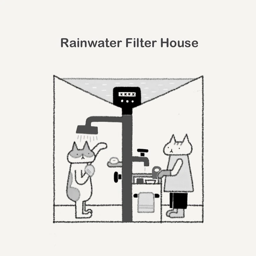 냥박사님이 개발하신 빗물을 걸러쓰는 집.