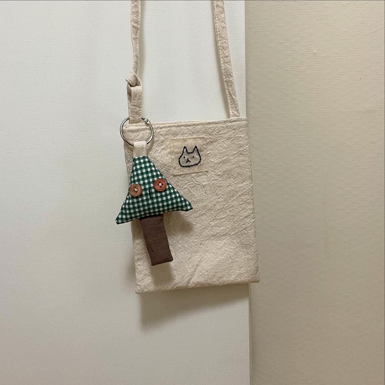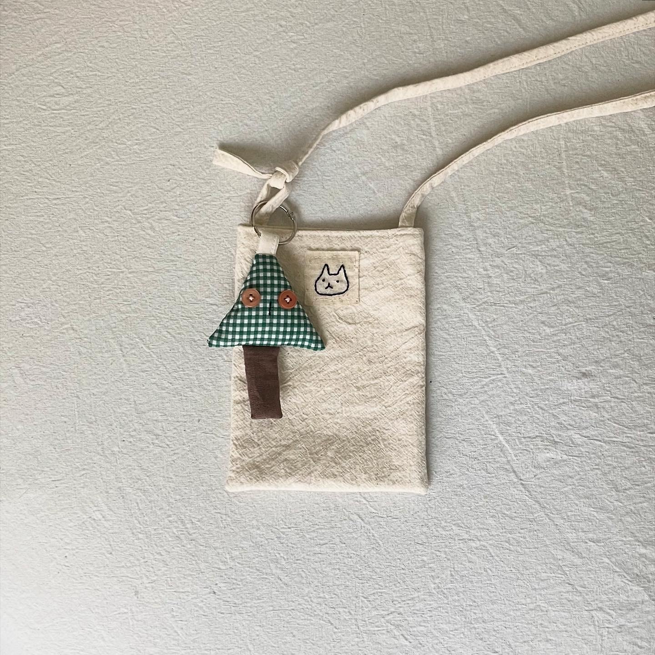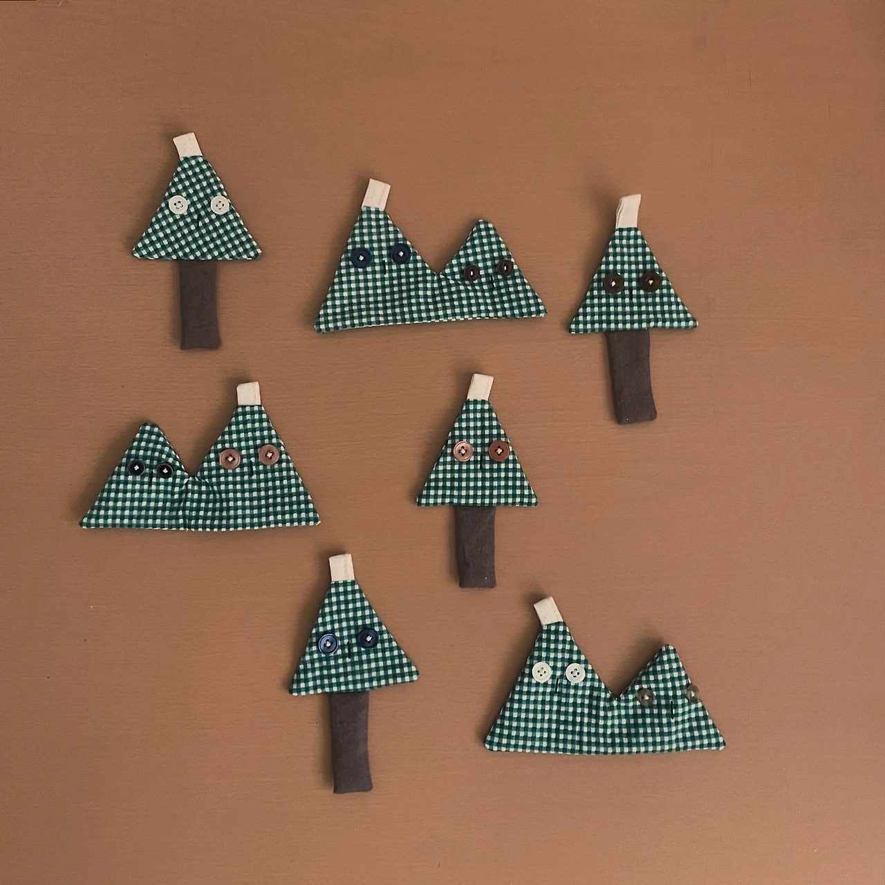 홀랑 타버린 산을 떠올리며 자투리 원단을 이용해 나무와 작은 숲 키링이를 만들고 있습니다.