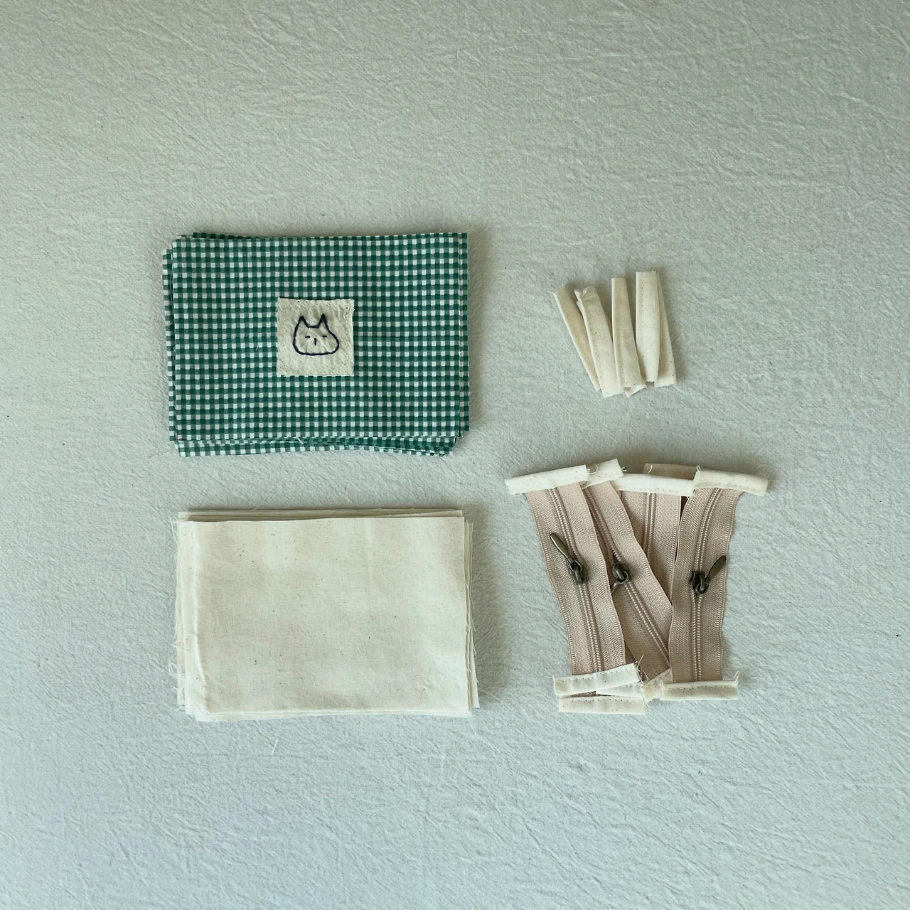 지난번 앞치마를 만들고 남은 초록초록한 자투리 원단으로 카드파우치를 만들고 있어요