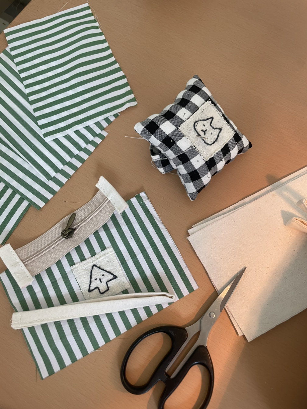 피크닉 가방을 생각하며 조그만 도시락 파우치를 만들었습니디. 셔츠의 여밈과 주머니 디테일을 살린 디자인이 귀엽지 않나요?!