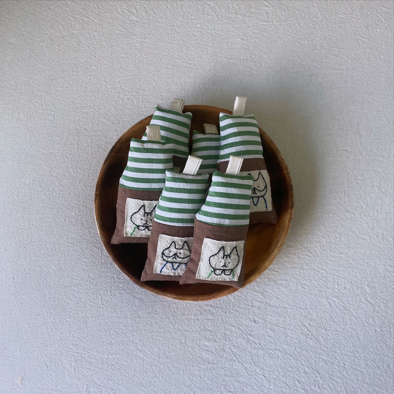 자투리천으로 한땀한땀 만든 초록 지붕 냥냥이 하우스 입니다.