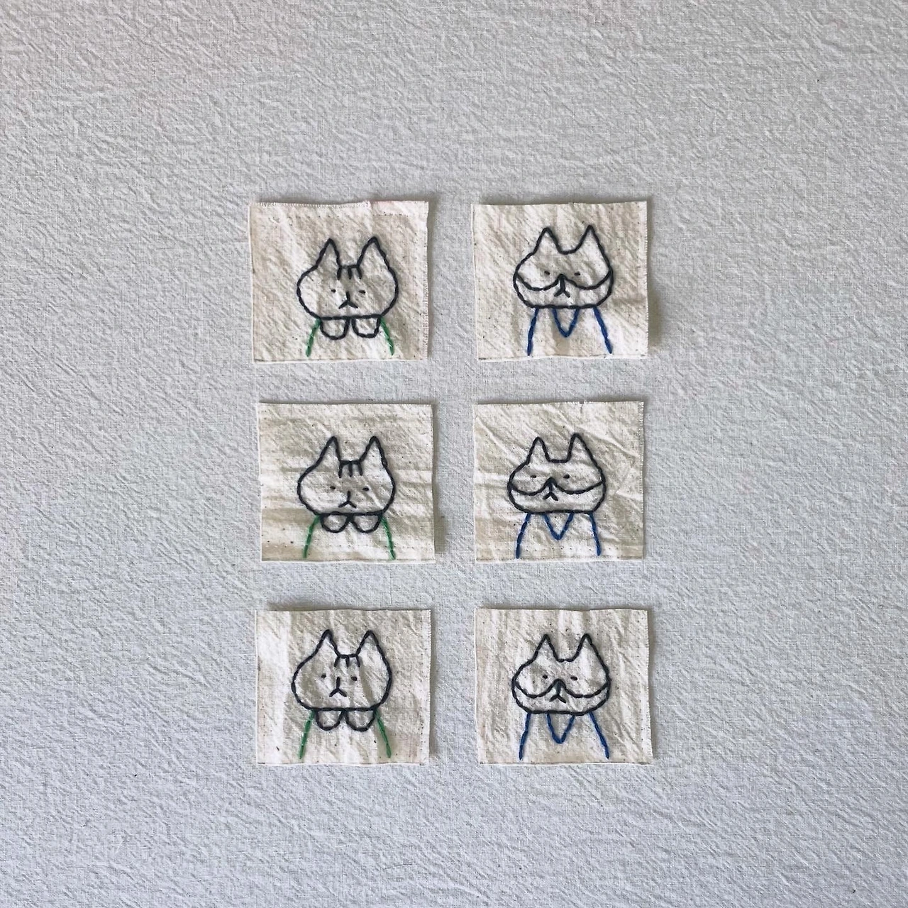 자투리천으로 한땀한땀 만든 작고 소중한 라벨입니다. 냥냥이들 알바 이력서에 쓸 증명 사진 몇 장 만들어 봤어요. ^^