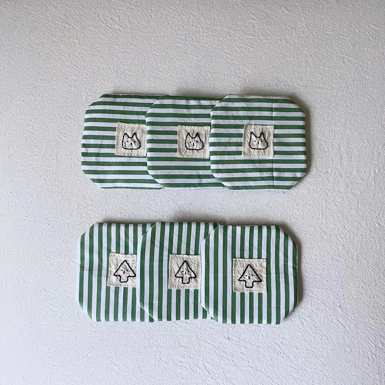 나무와 고양이 라벨이 달린 티코스터를 만들었습니다.
