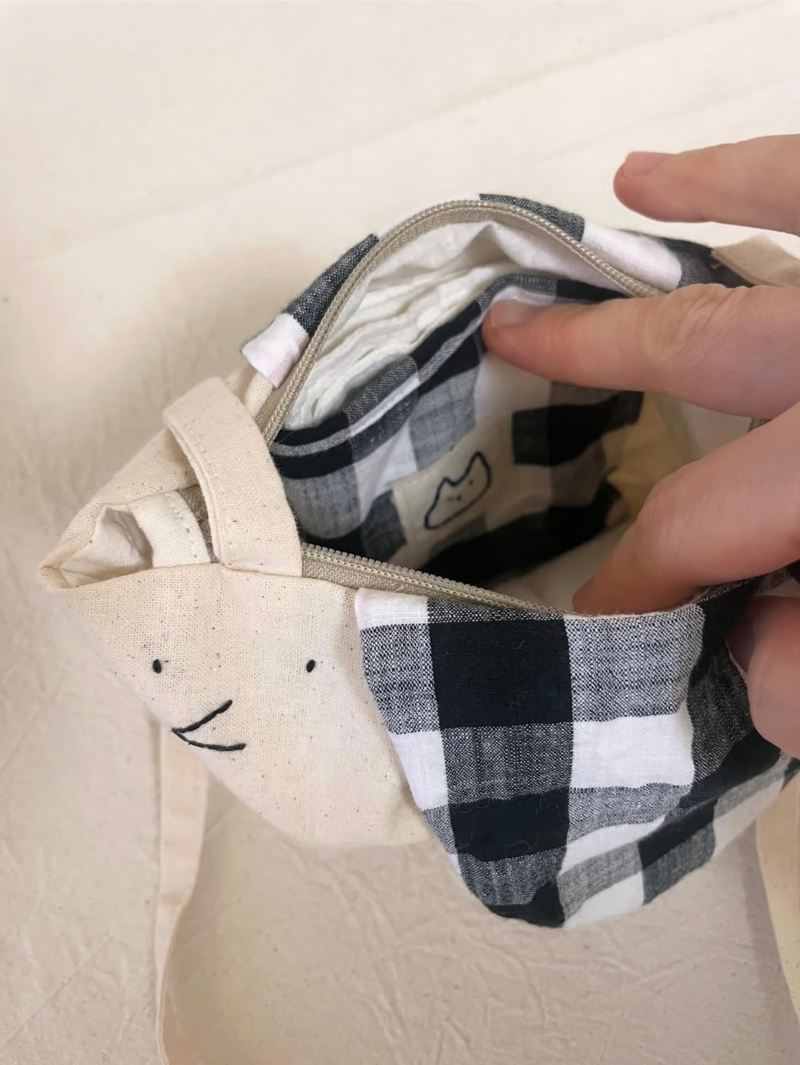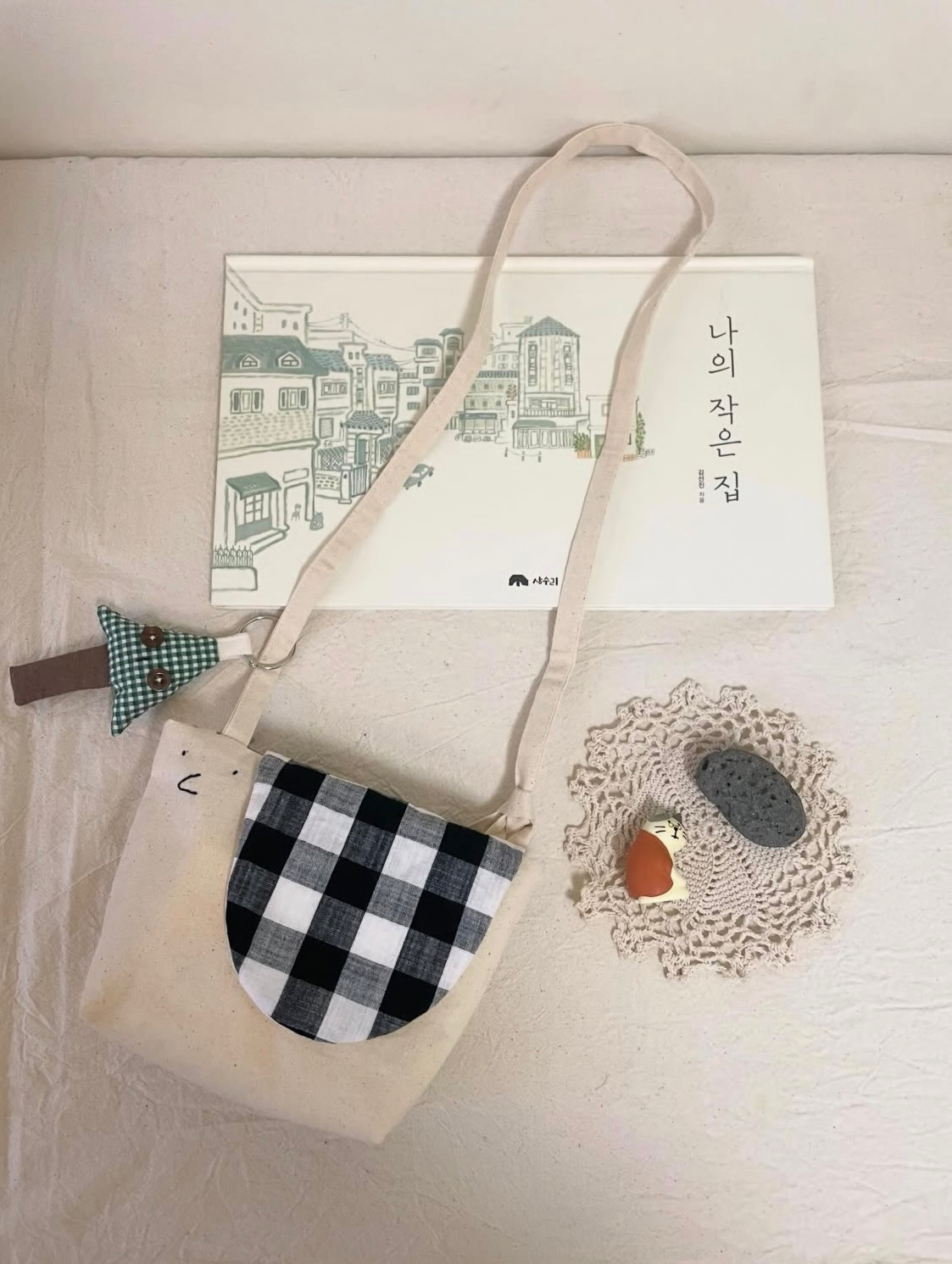 틈틈이 아이디어를 메모해 두었다가 패턴을 뜨고 재단, 제봉을 거쳐 샘플을 뽑는다. 한 달 이상 직접 사용해 보고 여러 번 수정을 거듭해 작업을 진행한다. 낡은 옷을 세탁하고 해체하고 다리고 라벨과 부자재를 떼고 분류하는 작업들까지… 적지 않은 시간과 품이 든다. 아침에 집안일해 놓고 잠깐, 오후에 점심 먹고 한동안. 마음먹고 엉덩이 붙이고 앉으면 하루에 가방 하나 아니면 두 개 정도 만든다. 할 때마다 부족한 게 보이고 쓸 때마다 수정할 게 밟힌다. 아이를 키우고, 농사를 짓고, 스스로를 사랑하는 일만큼 쉽지 않은 여정이다. 그럼에도 간간히 올라오는 하트와 주문, 어디선가 그 쓰임을 다하고 있다는 소식을 들을 때면 딸깍하고 초록불이 켜진다.